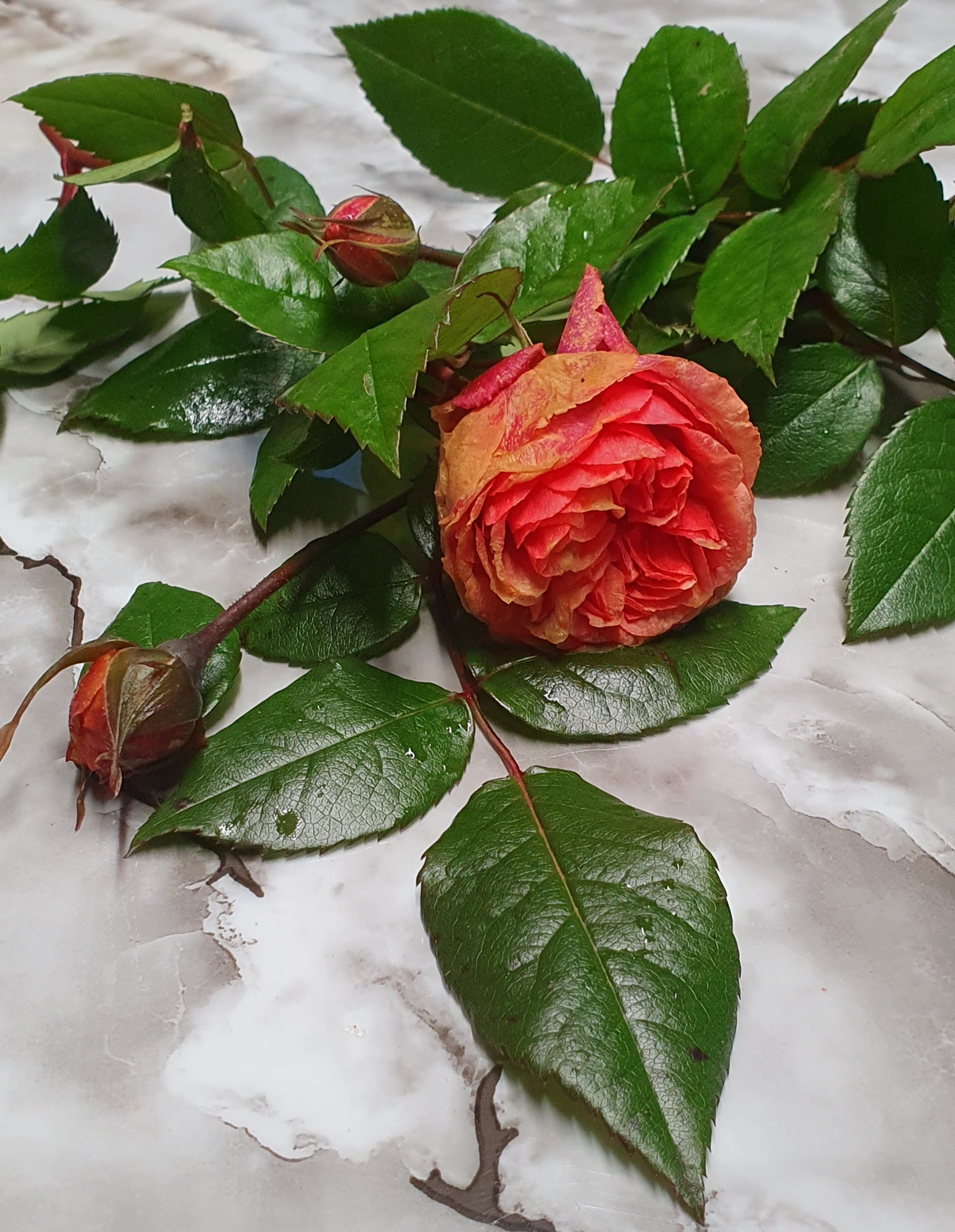 Преимущества: Невероятно красивая роза: листва, бутоны и цветы. Невероятная палитра красок от оранжевого, красного до светло-розового цвета. Каждый цветок скрашивается попеременно в эти цвета. А так как они расцветают попеременно, на кусту очень много разных цветов. Бутон тоже очень разный, трудно представить, что все эти цветы с одного куста! Плюс блестящая темная листва
