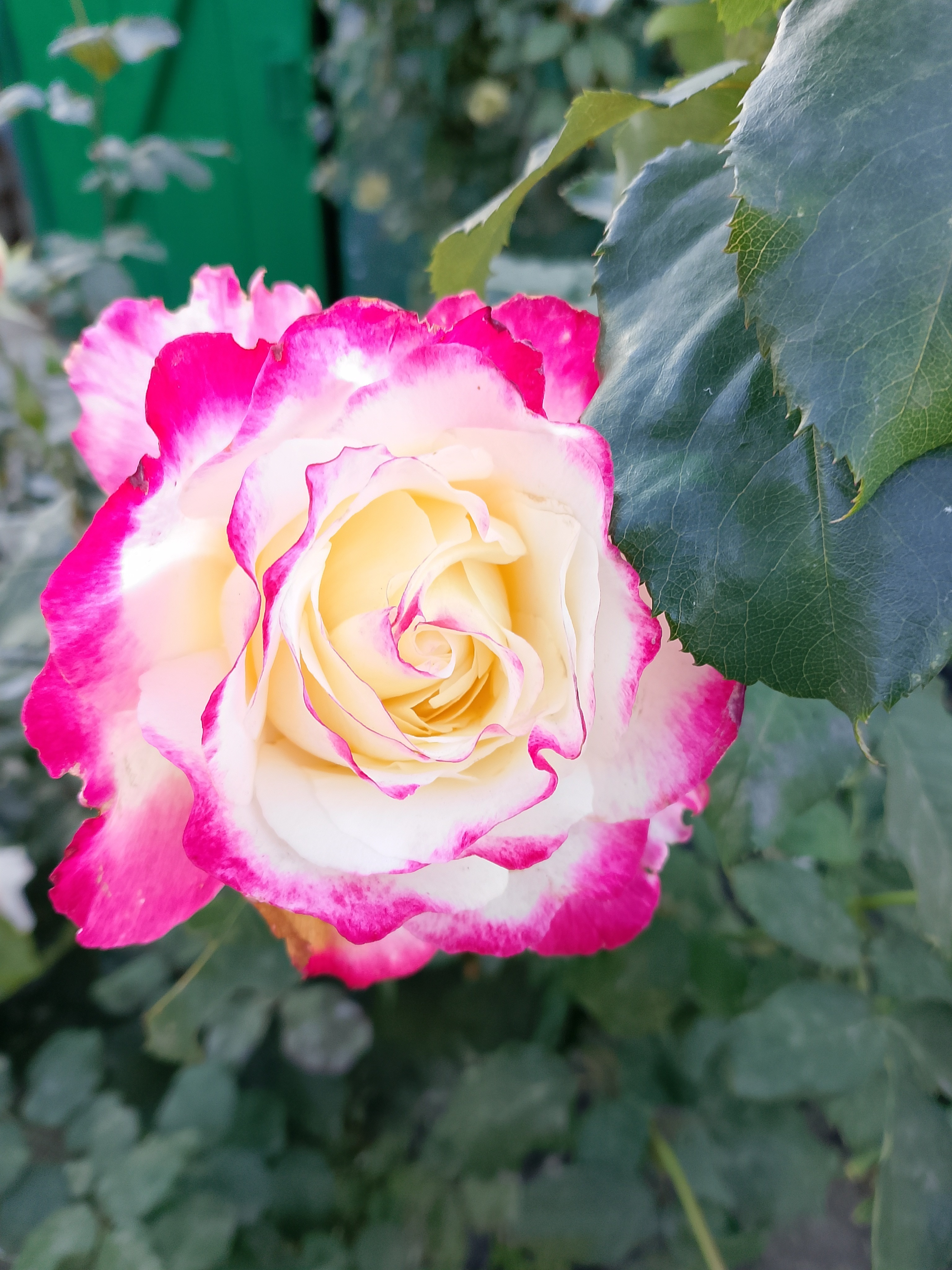 Но есть у меня одна роза, которую никак не спутать с другими сортами – Дабл делайт. Бутоны имеют очень красивую двухцветную окраску: края лепестков малинового цвета, а ближе к центру – бело-кремовые. Аромат цветов очень ярко выражен, я чувствую приятные фруктовые нотки.