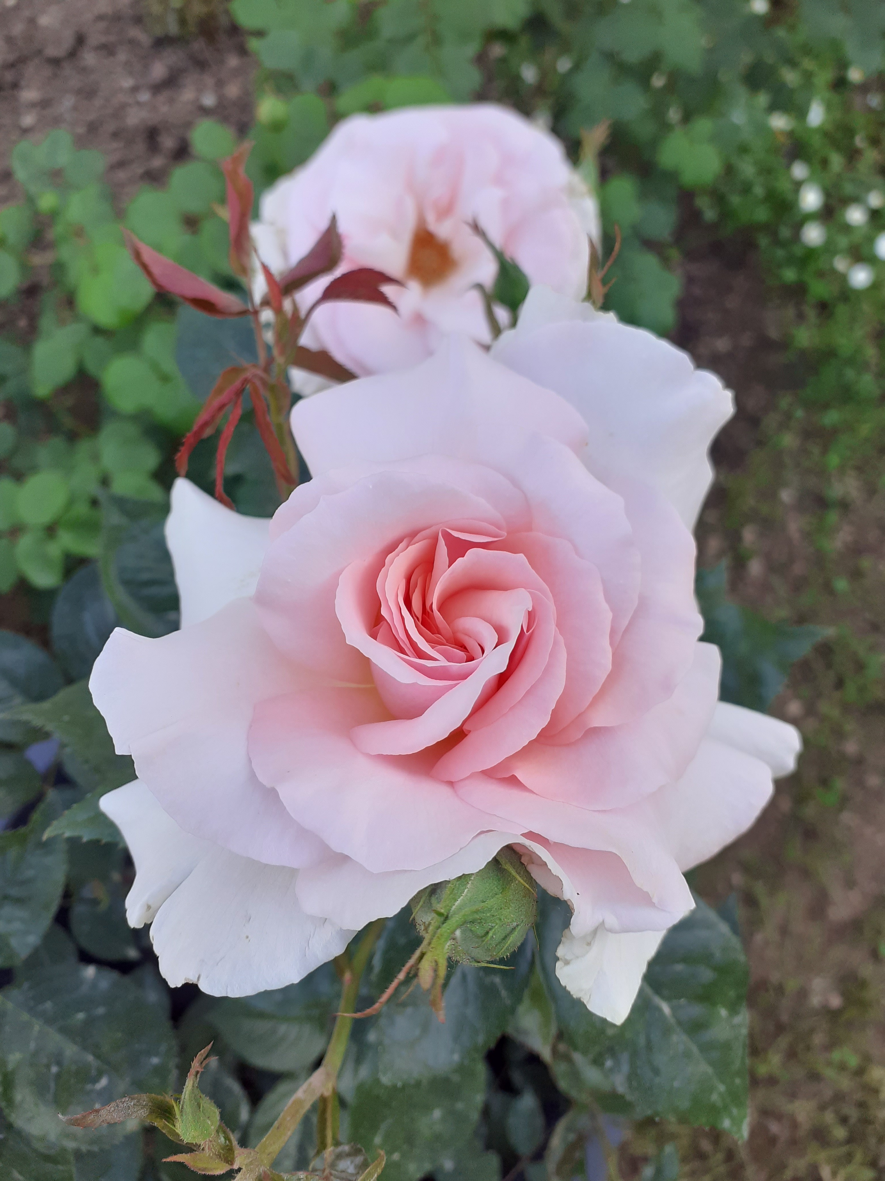 Роза Э Вайтер Шейд Оф Пейл (A Whiter Shade Of Pale) – это чайно-гибридный сорт, созданный британским селекционером Pearce в 2006 году. Сорт появился при скрещивании City of London ® и Indian Summer (hybrid tea, Pearce 1991). Роза также известна под синонимами PENfanfare и Linked Hearts.