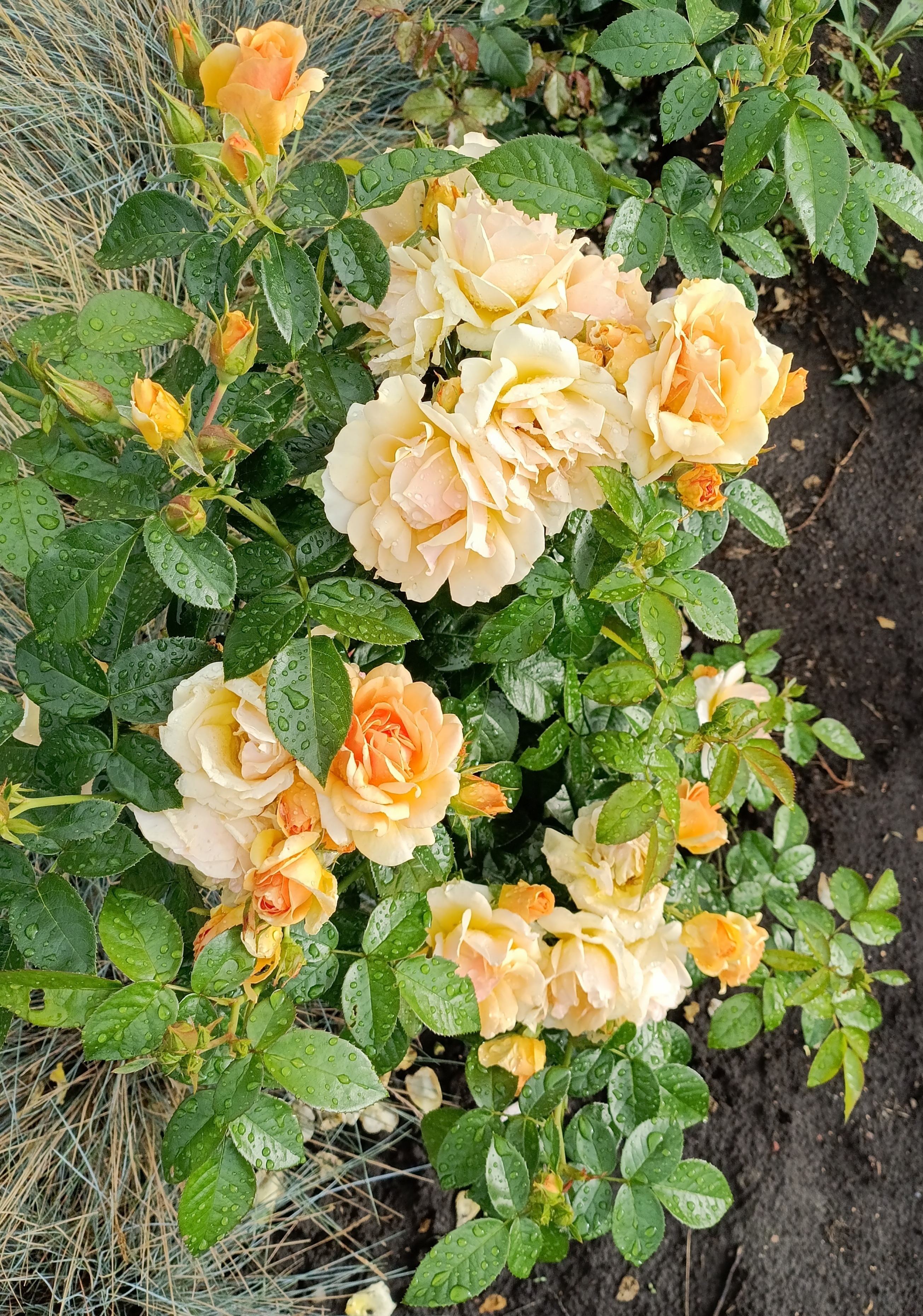 Цветоводы с восторгом отзываются об розе Хансештадт Росток: это чудо-машина по производству цветов, а листва не заболевает даже без обработок. С восхищением рассказывают о том, как красиво сочетаются глянцевая темная листва и сочные цветы абрикосовых тонов. Цветки на одном кусте могут отличаться расцветкой, встречаются варианты от лимонного и розового до апельсинового.