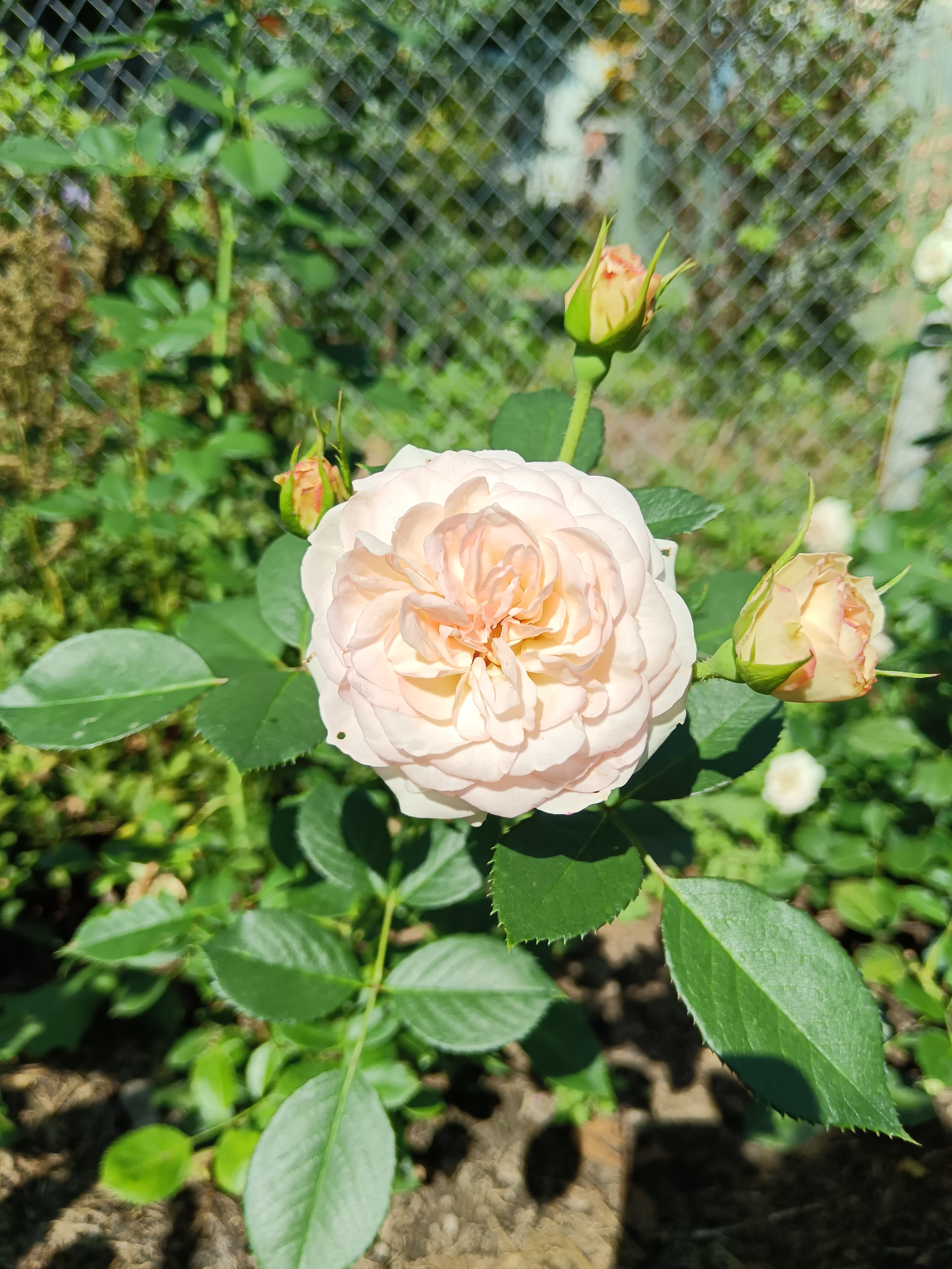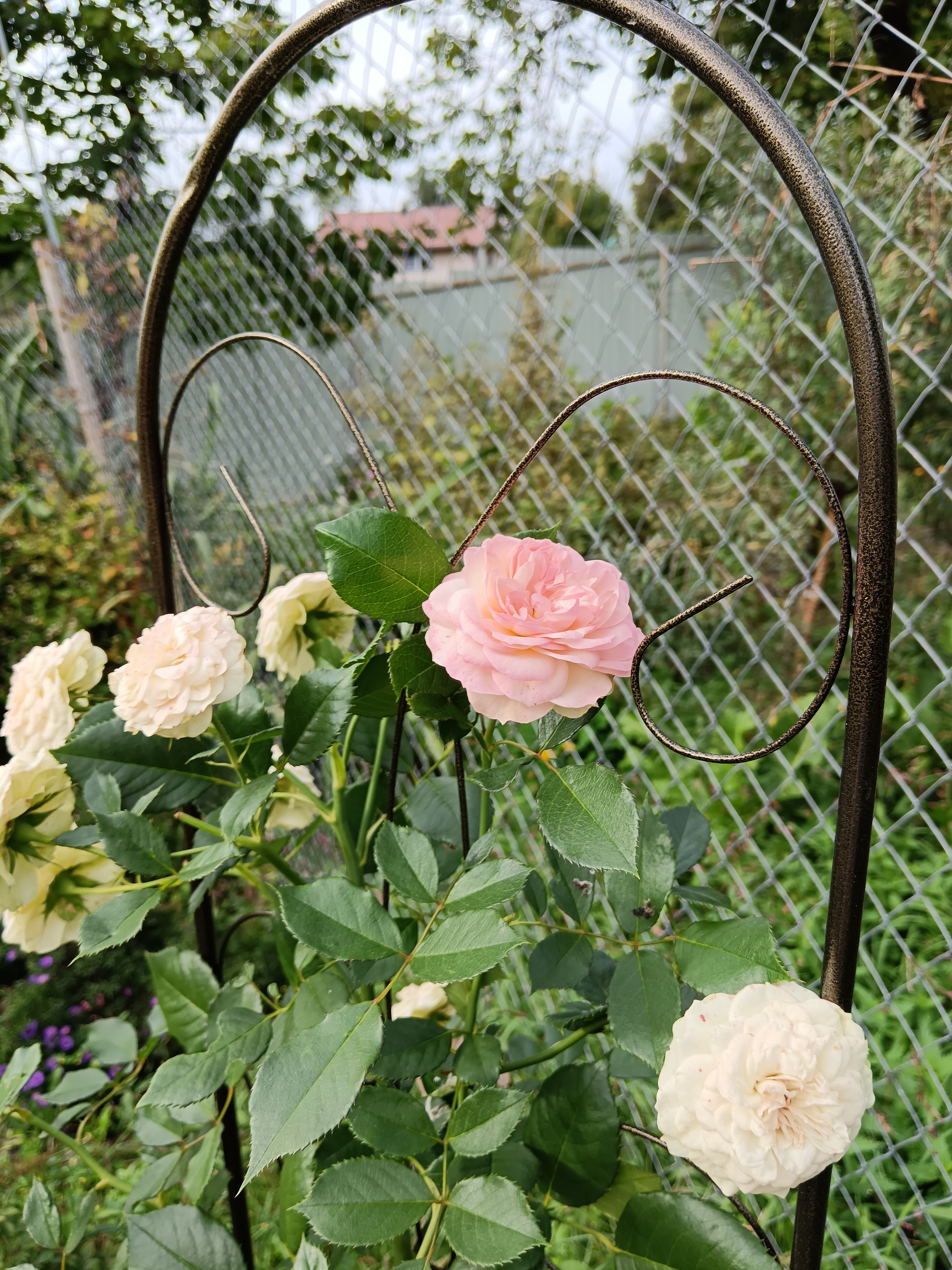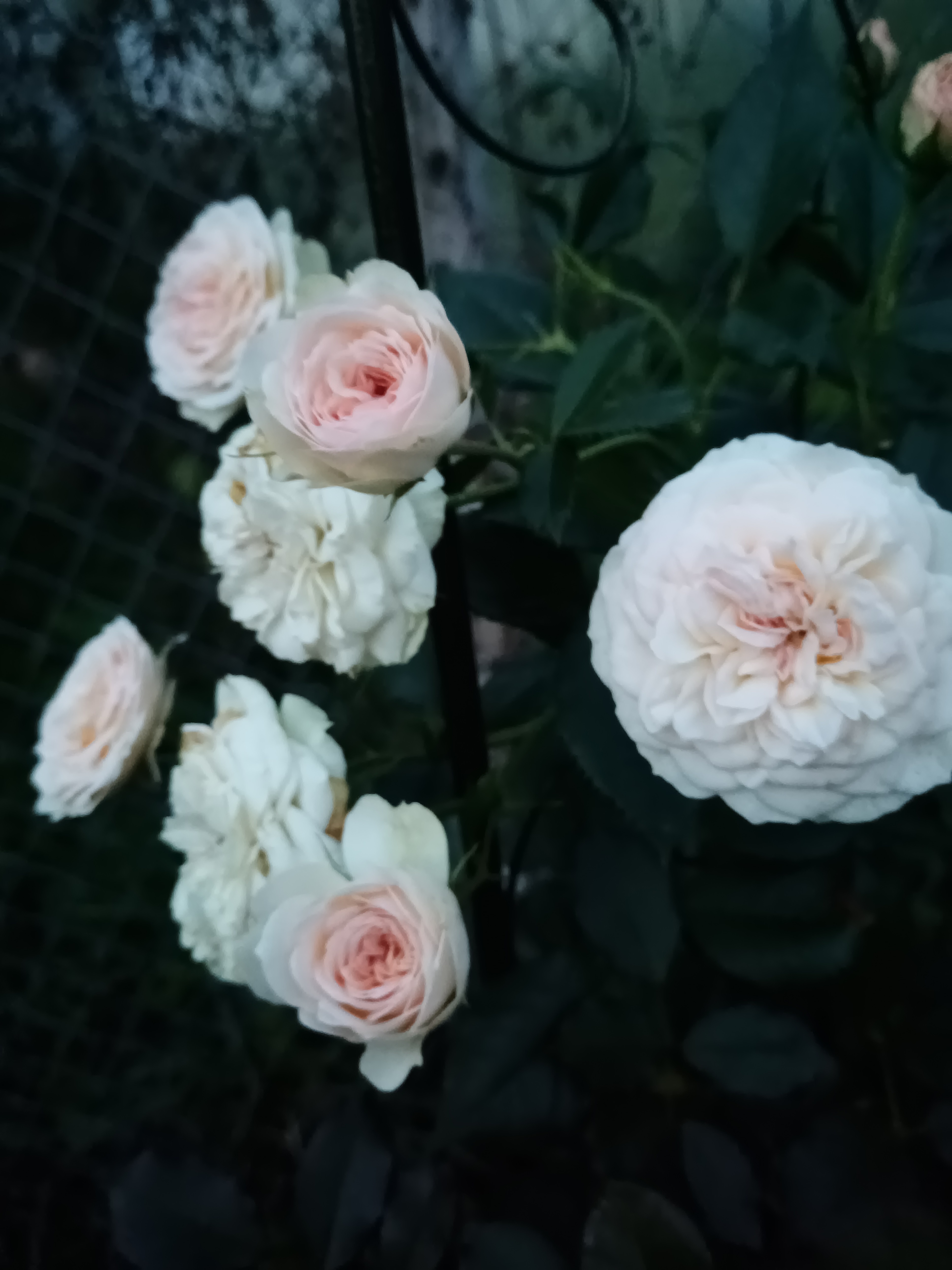 Преимущества: Непрерывно цветущая, очень красивая роза с обильными соцветиями нежной бело-розово-кремовой окраски. Куст мощный, сильно разветвлённый. Это моя любимица.