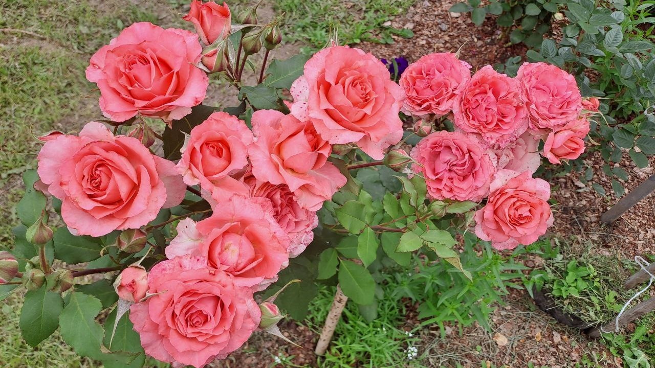 Коралл Желе в цвету вызывает восторг у всех, кто ее видел, и полностью оправдывает свое название. Форма крупных (8-10 см) махровых (26-40 лепестков) цветков является чашевидной. Цветочек обладает интенсивно-розовым окрасом, и при этом селекционерам удалось добиться визуального эффекта полупрозрачности, воздушности и невесомости. Собранные в букетовидные соцветия бутоны действительно напоминают желе в розовой чаше, издают приятный аромат личи, достаточно интенсивный, чтобы наполнить сад благоуханием.