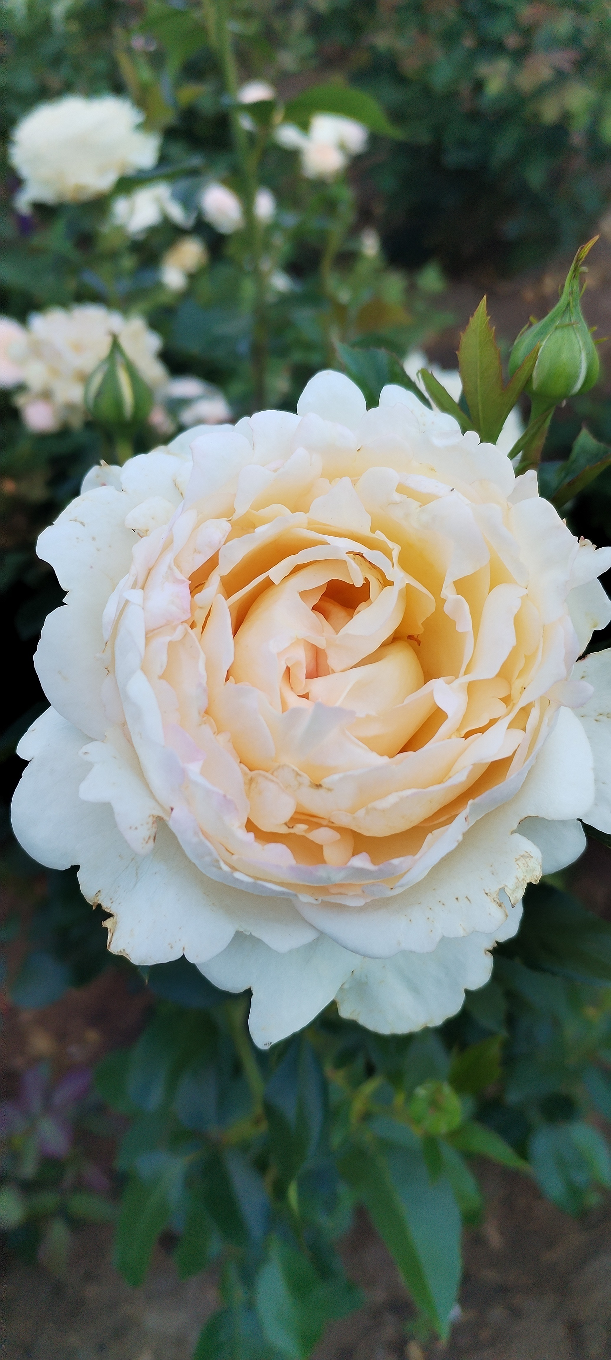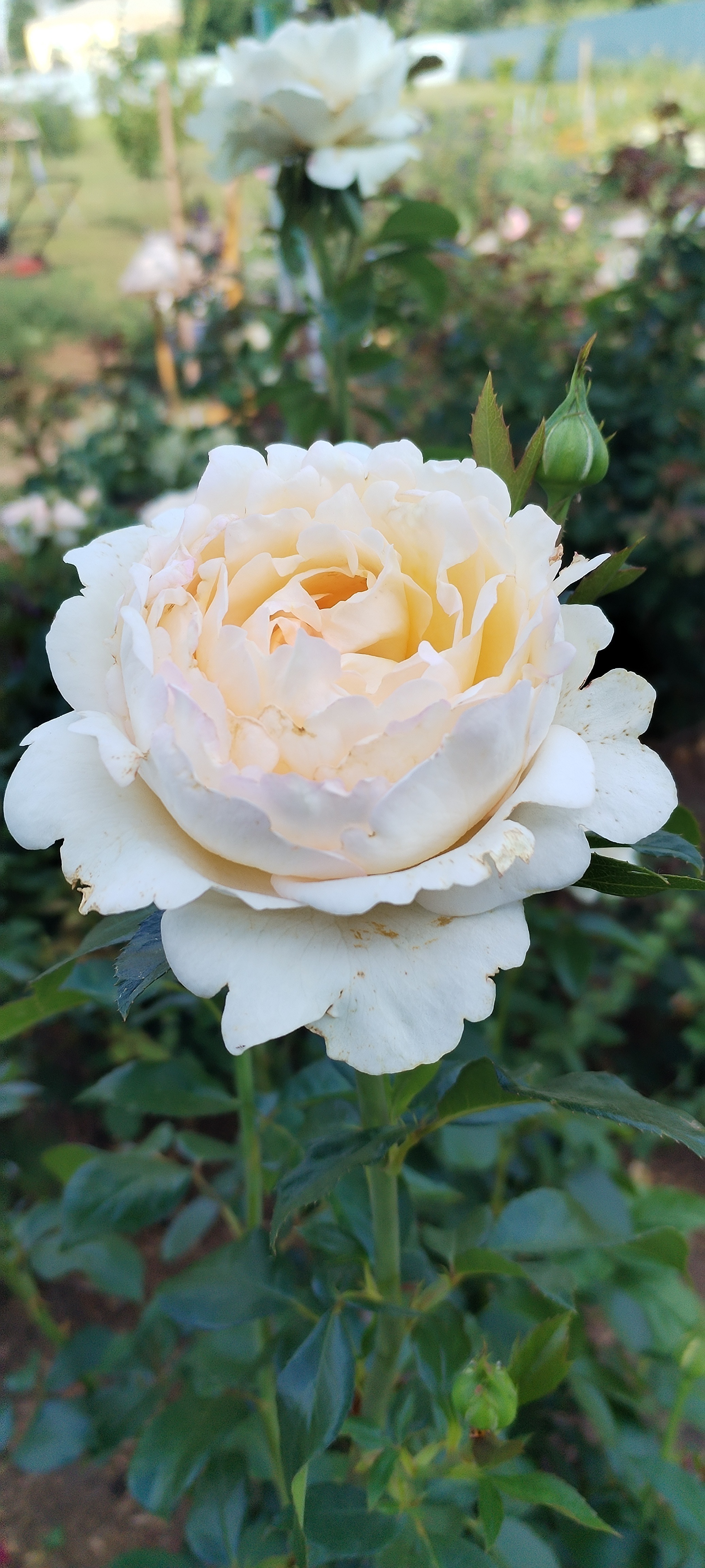 Преимущества: Это очень красивая роза! Ее трудно спутать с другими- элегантный кремовый оттенок будто подсвечивает ее изнутри, множество лепестков сложены в плотный цветок. Аромат волшебный, довольно интенсивный (не сказала бы, что цитрусовый). Выросла из маленького заморыша в статную красавицу (примерно 120 см). Все стебли крепкие, не разваливаются в стороны. Голову держит высоко, как и подобает королеве. К болячкам достаточно устойчива. А вот бронзовки любят ее так же, как и я.