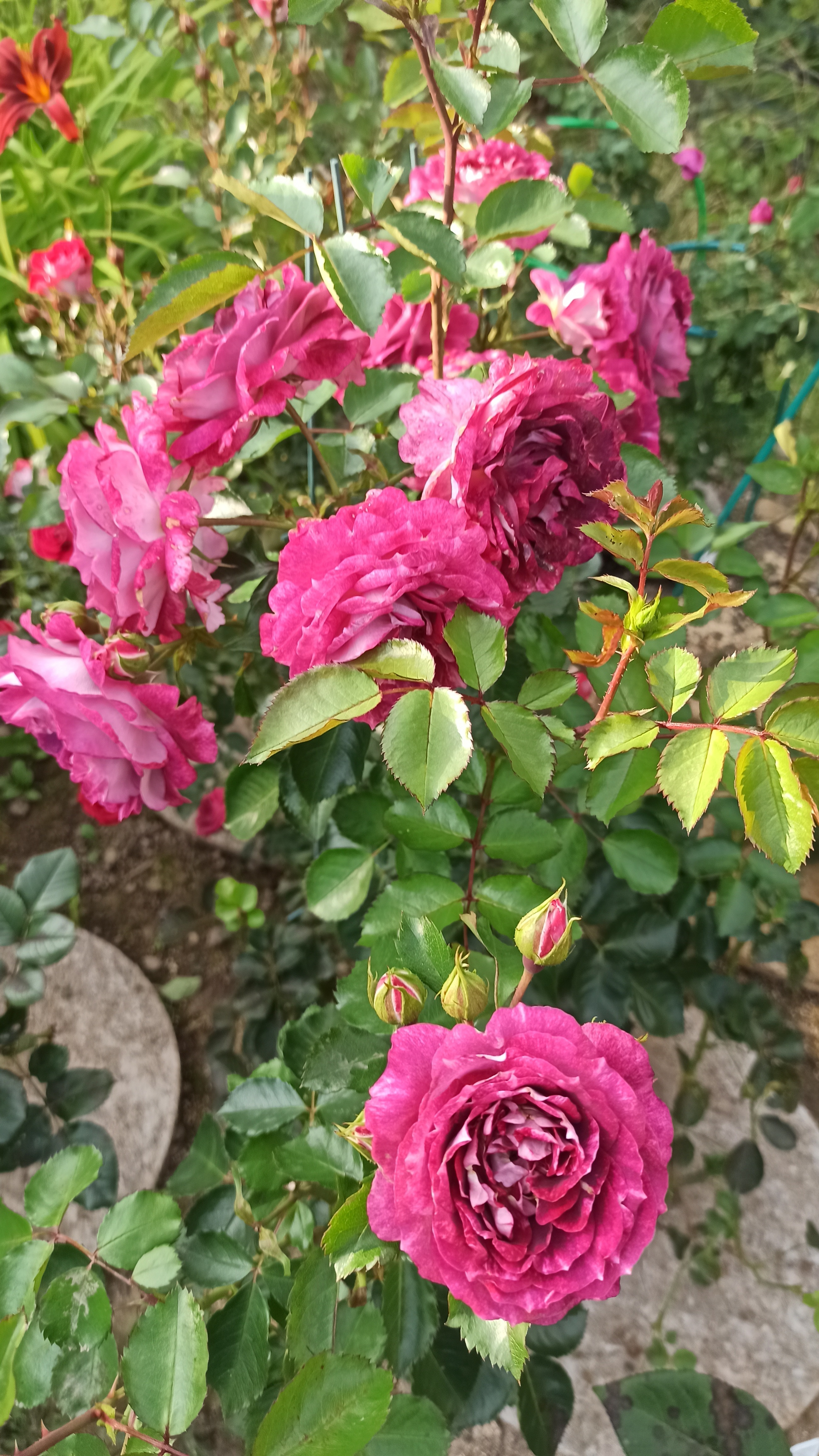 Преимущества: Роза у меня первый год, зацвела в середине лета и цвела непрерывно до заморозков. Необычная форма лепестков цветка, интересная раскраска цветка розовая в крапинку и белый кончик лепестков. Цветёт кистями, цветы крупные.