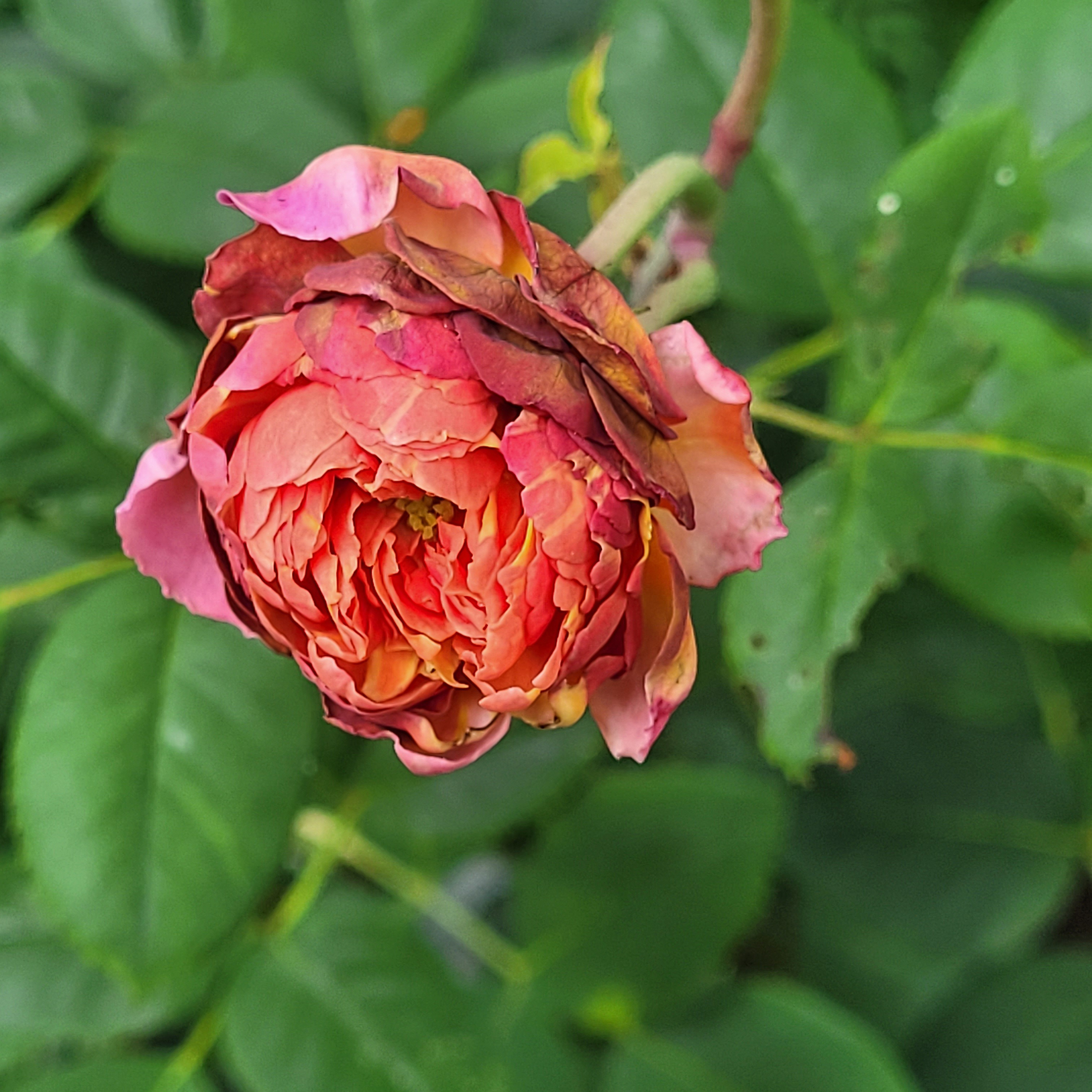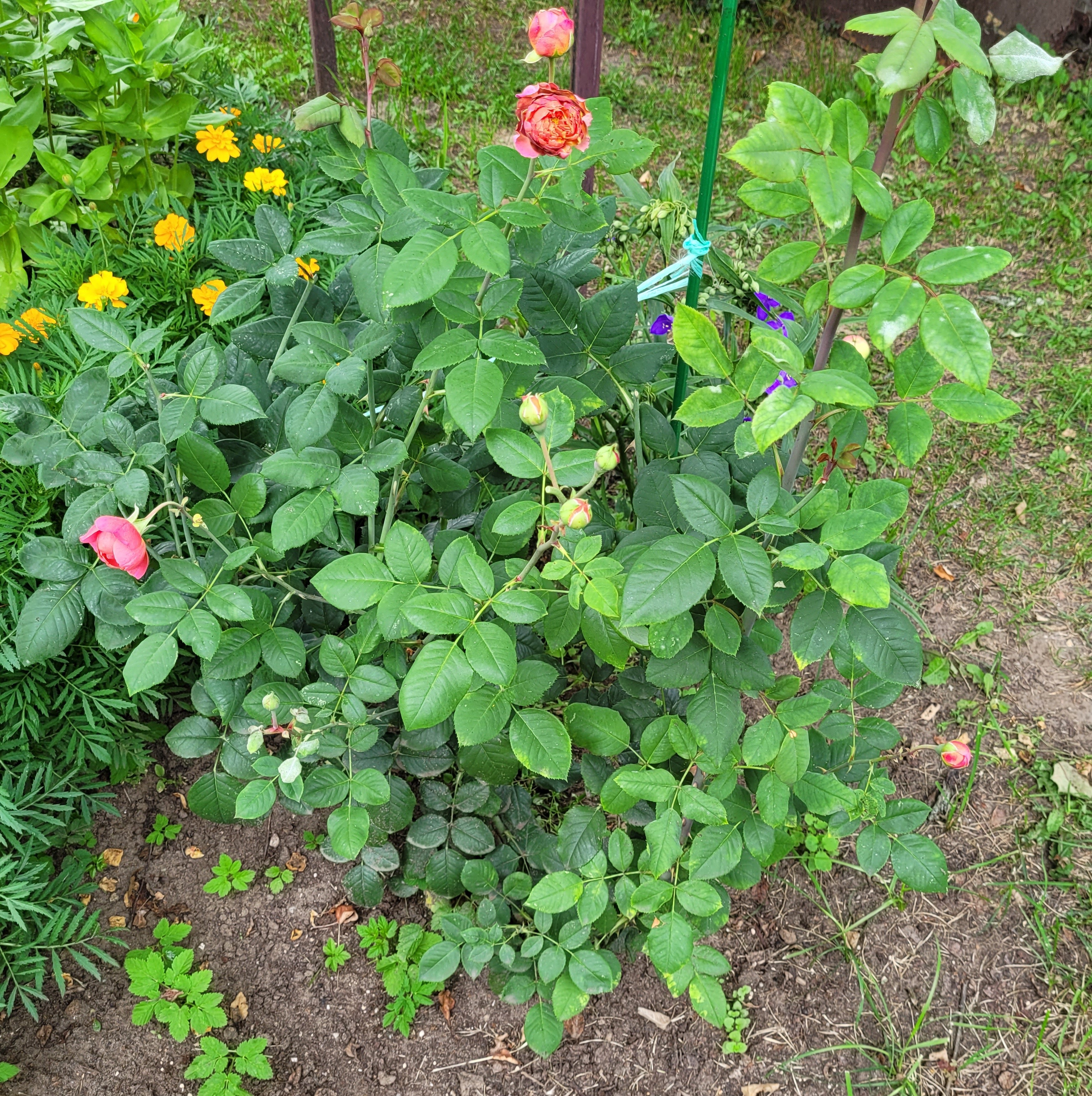 Комментарий: Мне роза не понравилась. В дождливое подмосковное лето 2025 она практически не распускалась, лепестки коричневели и сохли. Кроме того, заметила на листьях белый налёт (мучнистая роса). Выглядит куст непрезентабельно, в отличие от пушистого яркого "Красной шапочки" и "Братья гримм". Подумываю выкопать и посадить другой сорт. Мне нравятся из питомника "Кордес"