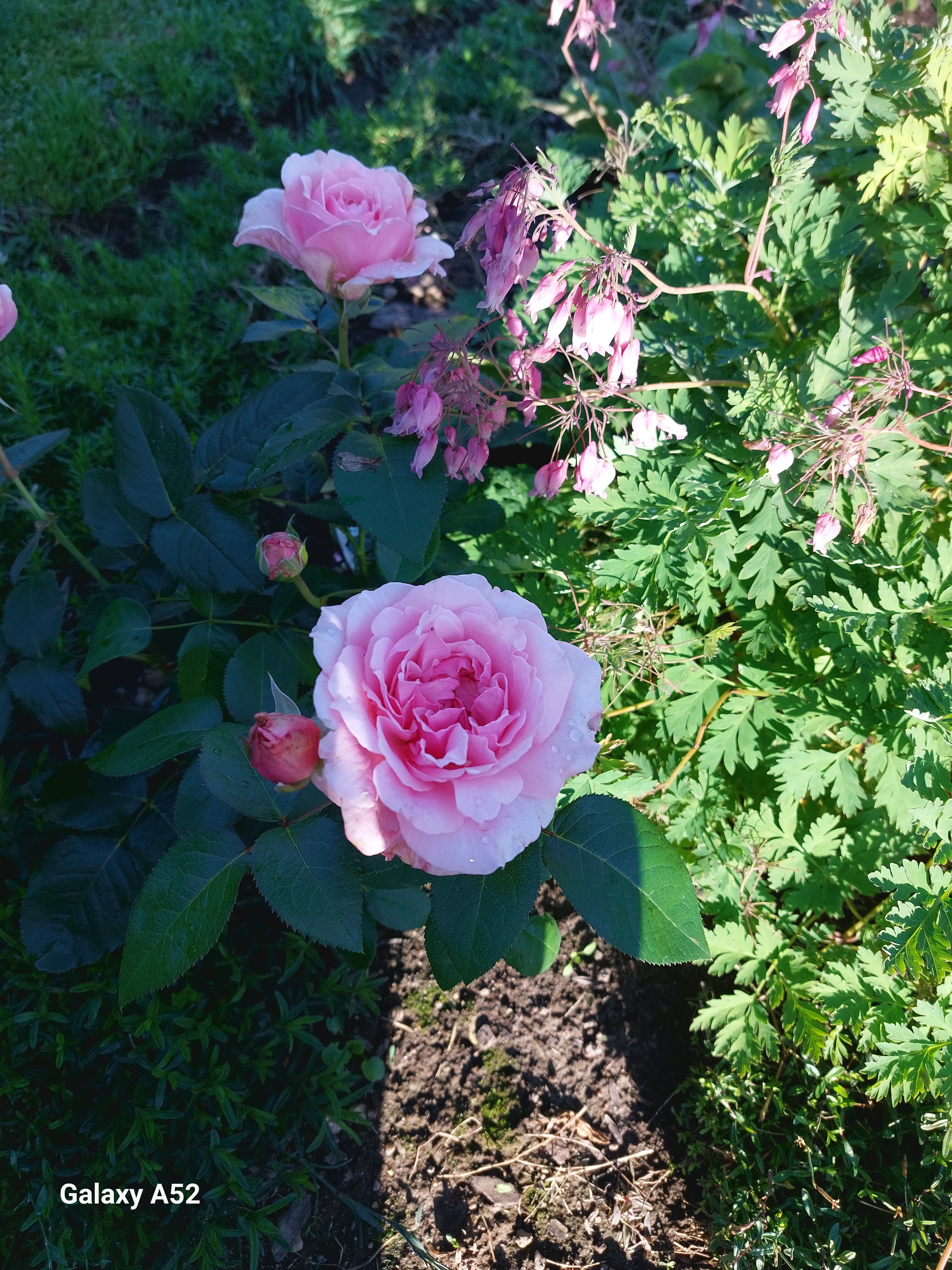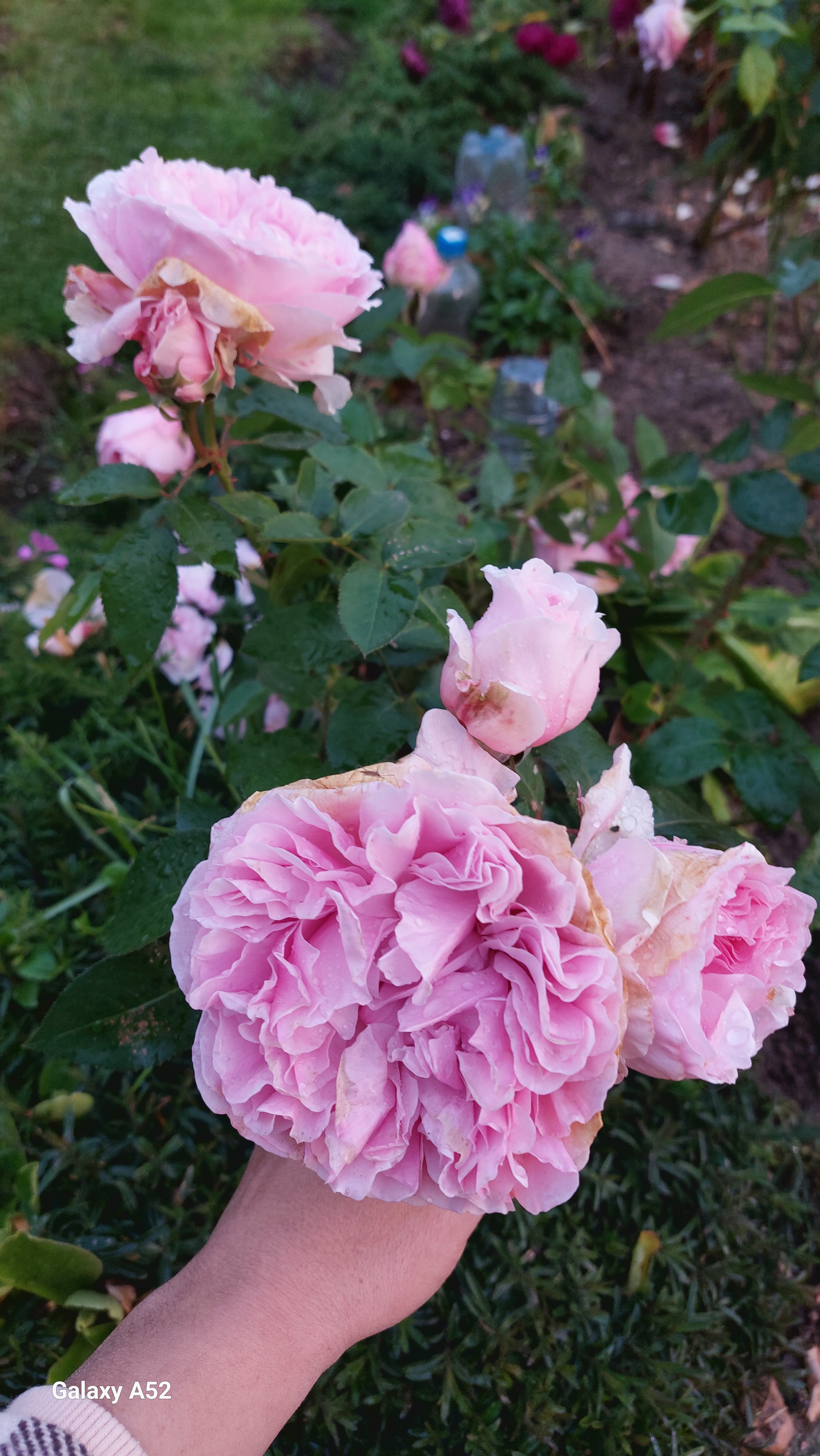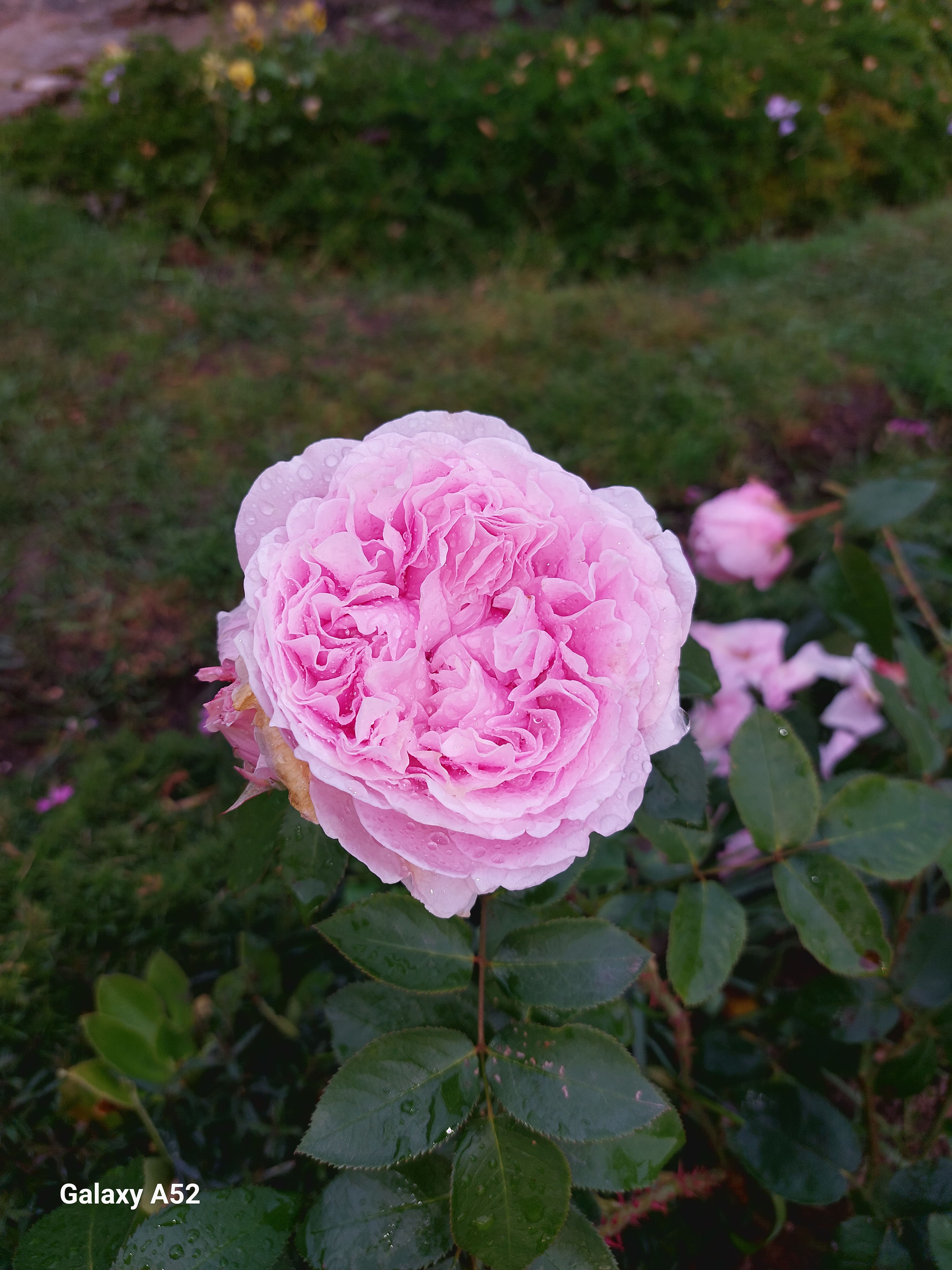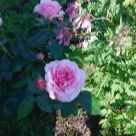Комментарий: Сильный огромный пионовидный цветок более 12 см в диаметре на плотной ножке, отлично держашийся как на солнце, так и после дождя в Московской области. Не выгорает. За огромным количеством цветов, напоминающих розовые облака, совсем не видно листвы. Достойный сорт из коллекции великого Остина.