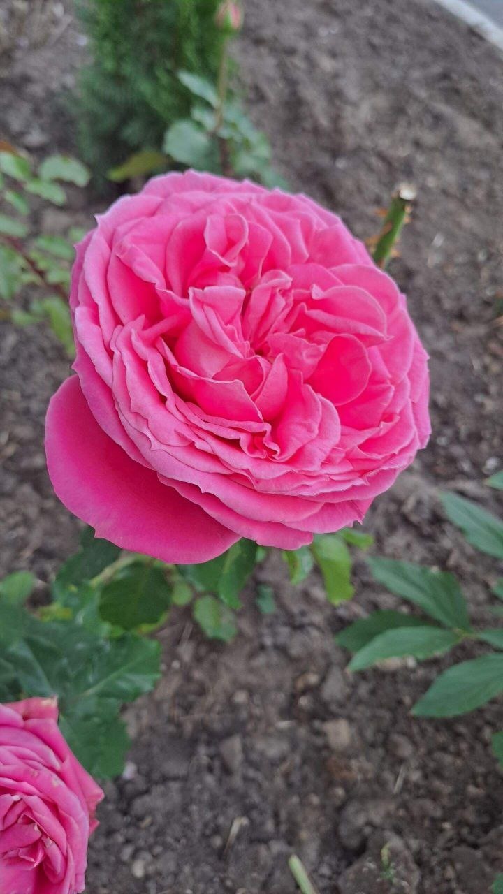 Роза этого сорта относится к категории густомахровых. Цветки в полном роспуске могут напоминать пионы за счет чашевидной формы венчика с плоским центром. Бутоны бокаловидные, темно-розовые. Цветки крупные, диаметром 11-13 см. Лепестки распустившегося венчика насыщенно-розовые, с более темной обратной стороной.