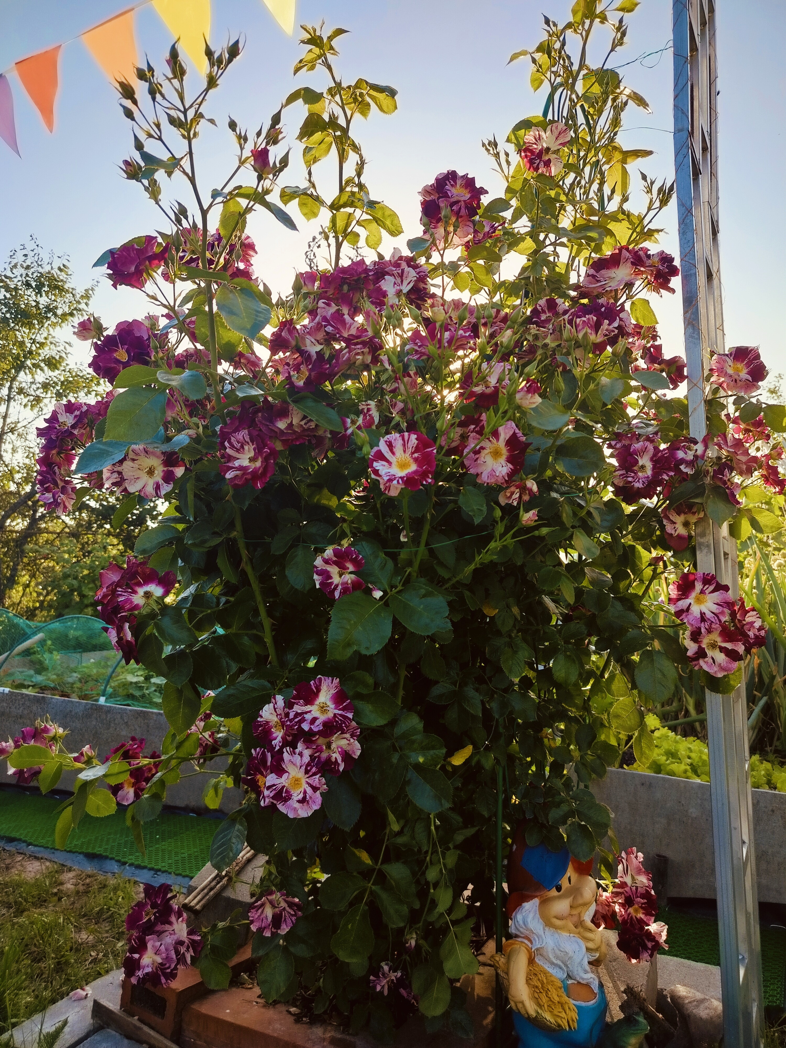 Недостатки: Разваливается в разные стороны, каждый год надо опору увеличивать. На зиму надо наклонять и укрывать, но эта красотка того стоит. Выходит из зимовки хорошо. При сильном ветре облетают лепестки.