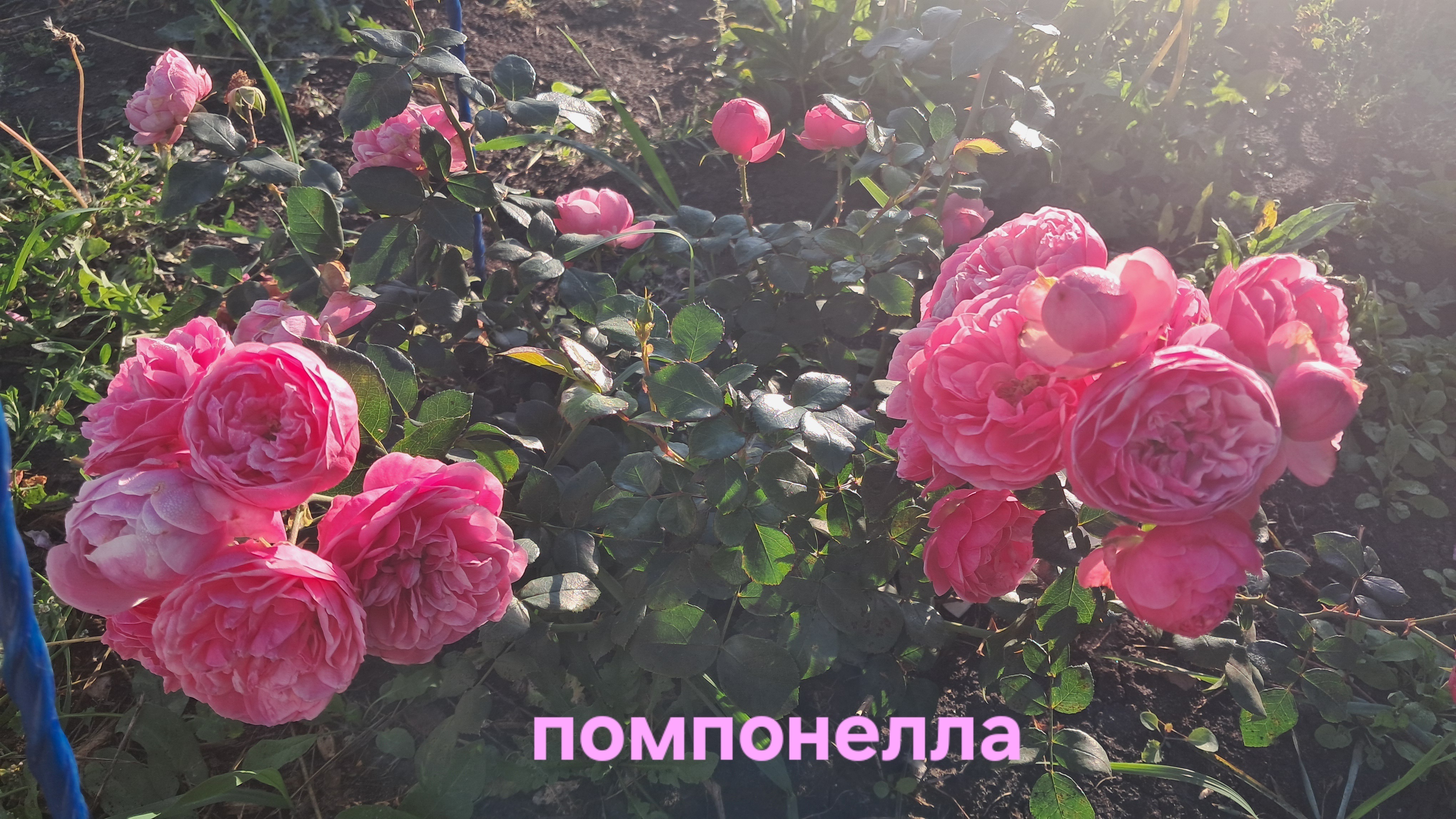 Роза Помпонелла отличается продолжительным цветением, которое начинается с начала июля и радует нас вплоть до конца сентября. Пионовидные бутоны красивого розового цвета вырастают до 5 см в диаметре. Ближе к краям лепестки будто немного выгорают, становясь светло-розовыми. Растут цветы гроздьями. Бутоны плотно усыпают всю ветку. На одной грозди формируется до 20 аккуратных плотных цветков.