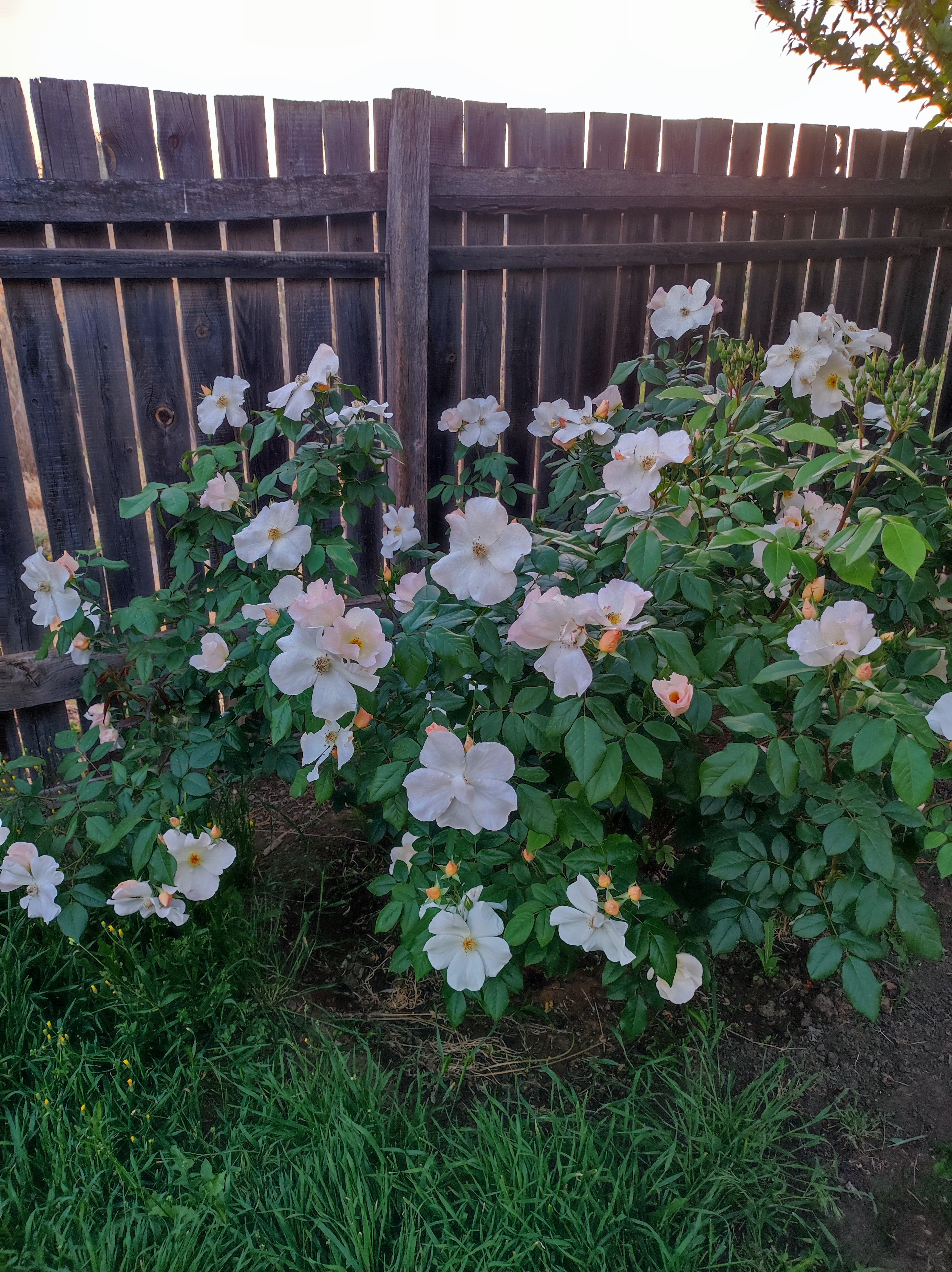 Преимущества: Прекрасная роза. Весной куст выглядит роскошно. На вершинах веток образует огромные белые шапки, которые долго держатся на ветках и тут же образует новые боковые побеги с бутонами. Летом у нас +40С, сухой воздух. Роза все равно продолжает цвести. А осенью, когда похолодает цветки ярко розовые. Аромат слабый. Не болеет.