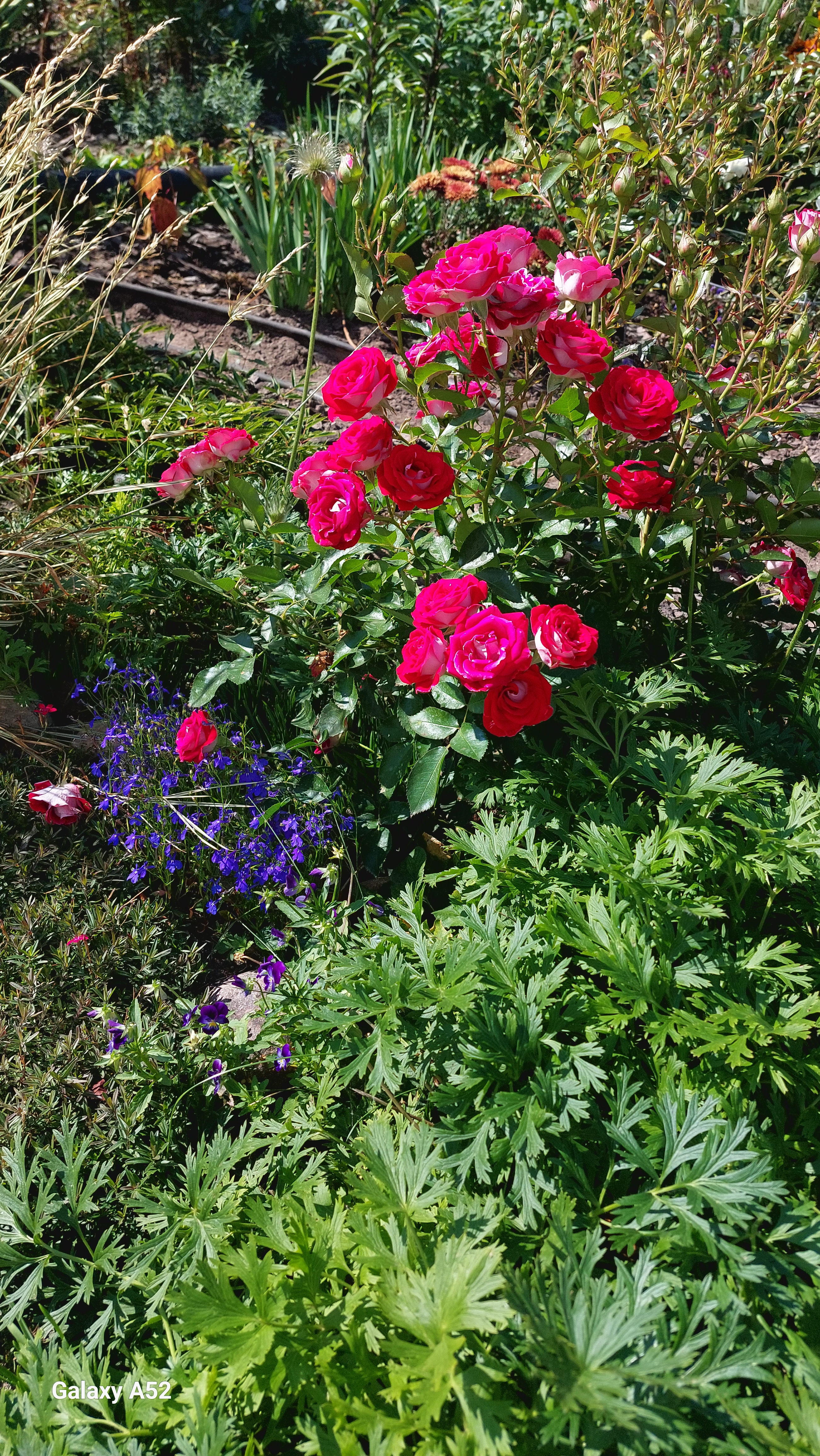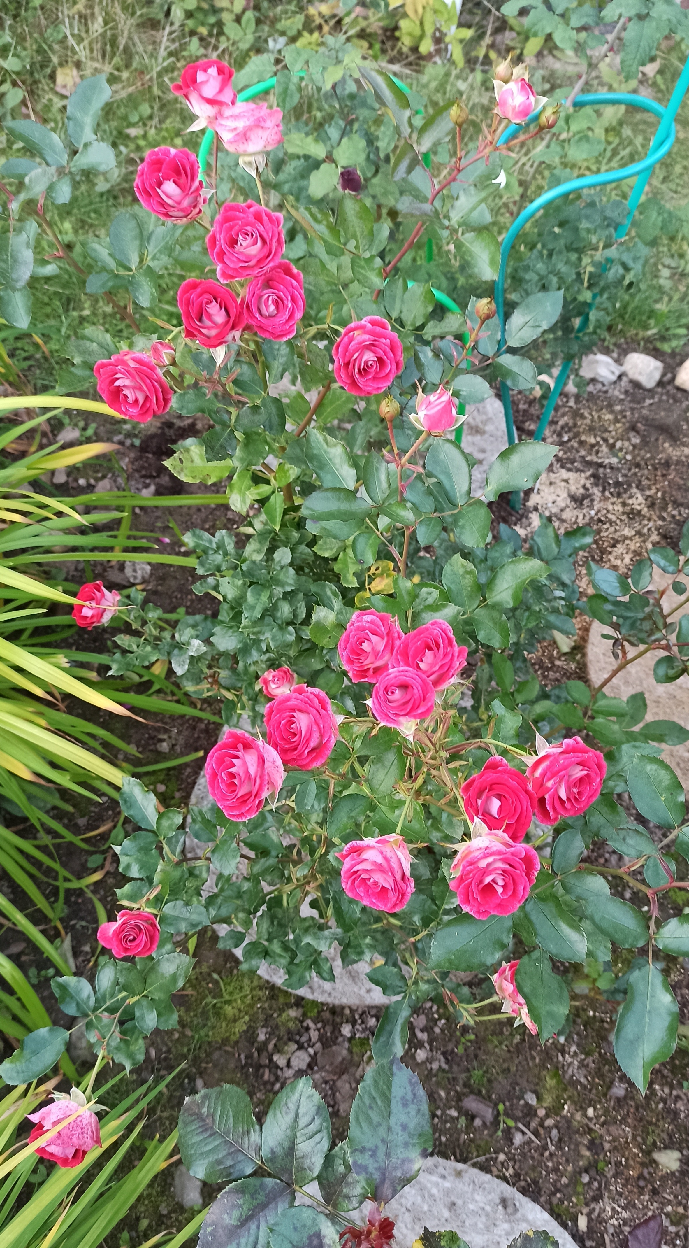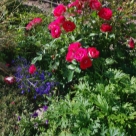 Преимущества: Розочка прекрасная – милая, обильная, неприхотливая, очень яркая, раскидистая. Небольшого ростика но пушистая и не поникающая – все цветочки смотрят вверх. Здоровенькая, не болела за два года. Зимует под укрытием, Сибирь. В северных регионах она скорей всего не будет заявленного роста в 100 см – у меня не более 60 см., но может еще наберет высоту, буду ждать, посадила ее во второй ряд и наверное зря, хотя она разбавляет россыпью мелких малиновых цветочков крупноцветковые розы и очень оживляет клумбу своим великолепием