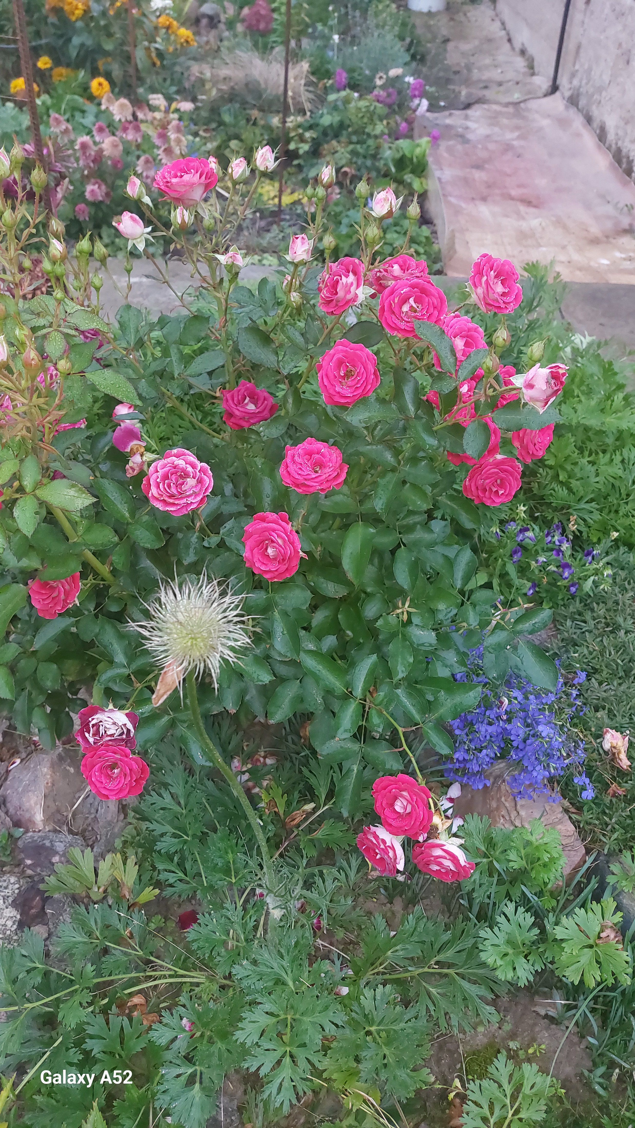 Преимущества: На юге Сибири зимует под двойным спандбондом и выходит из зимы всегда без потерь, очень морозостойкая. Огромное количество небольших цветов, цветет букетами, даже похожа на спрей. Лепестки ярко-розовые, как неоновые, а изнанка белая, так эффектно. И это единственная у меня роза без шипов, очень доверчивая. После цветения цветок мумифицируется и опадает целиком вместе с кусочком стебля, легко собрать и роза всегда опрятная.