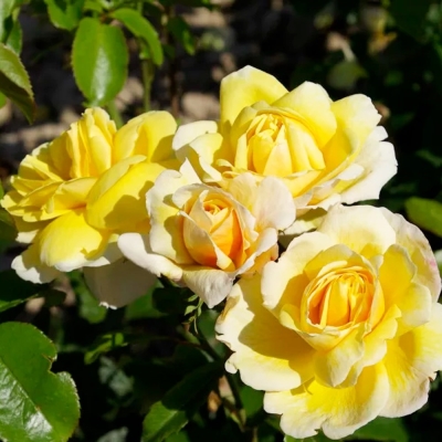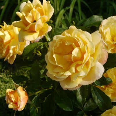 Окраска бутона розы желтая, а окраска цветков – ярко-желтая с хамелеоновым эффектом. Размер цветков составляет от 6 до 7 см в диаметре. Количество цветков на стебле может быть от одного до трех.
