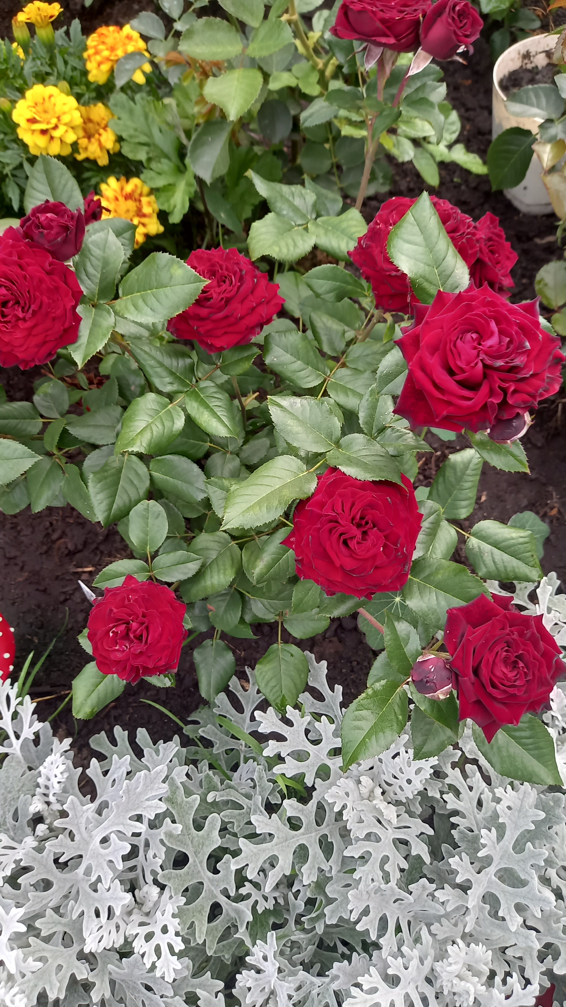 Цветок глубокого темно-красного бархата. Цветет практически непрерывно. Не боится обильных дождей. А также мне нравится, что куст особо не разрастается, и позволяет сэкономить место на участке.
