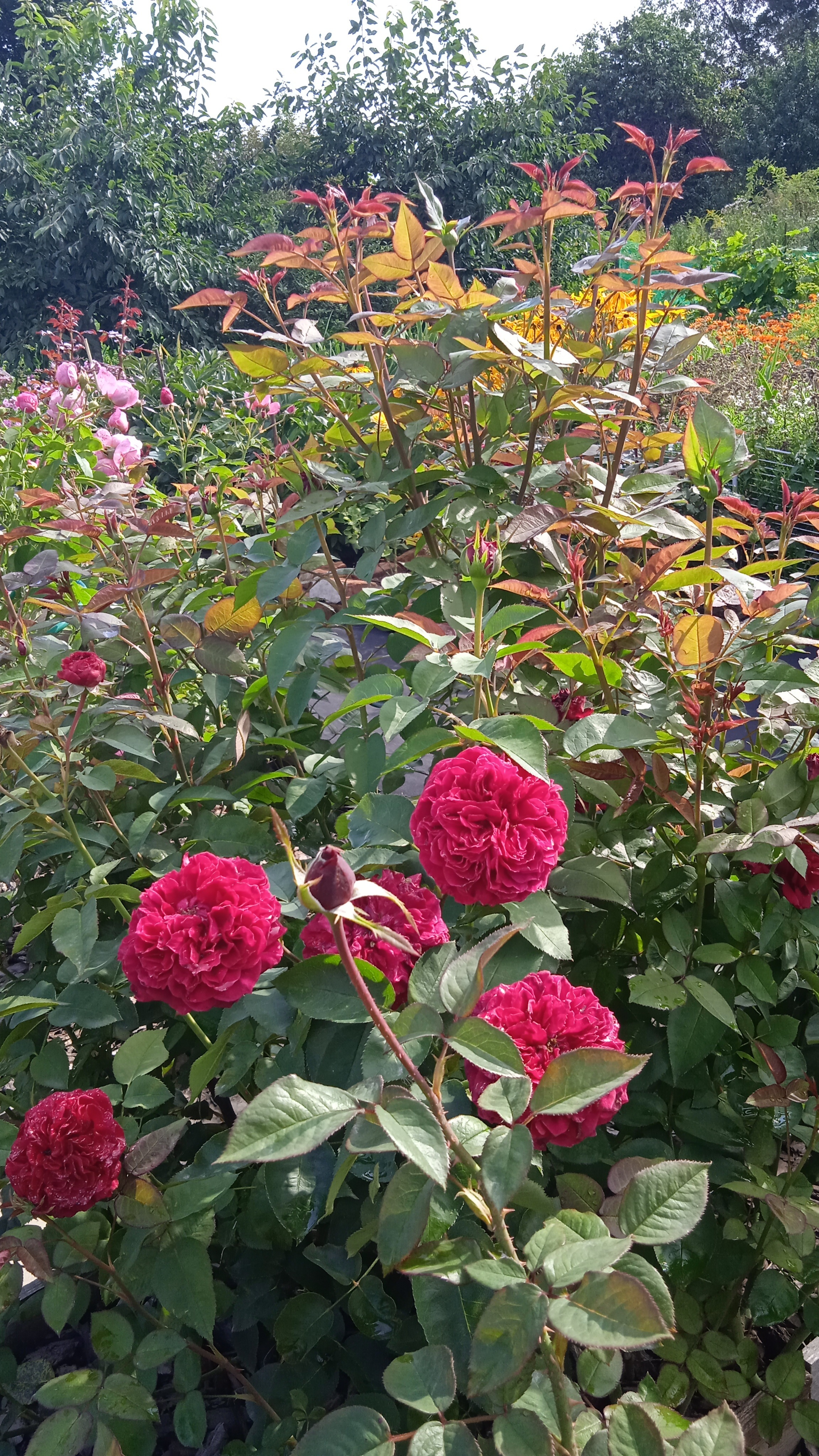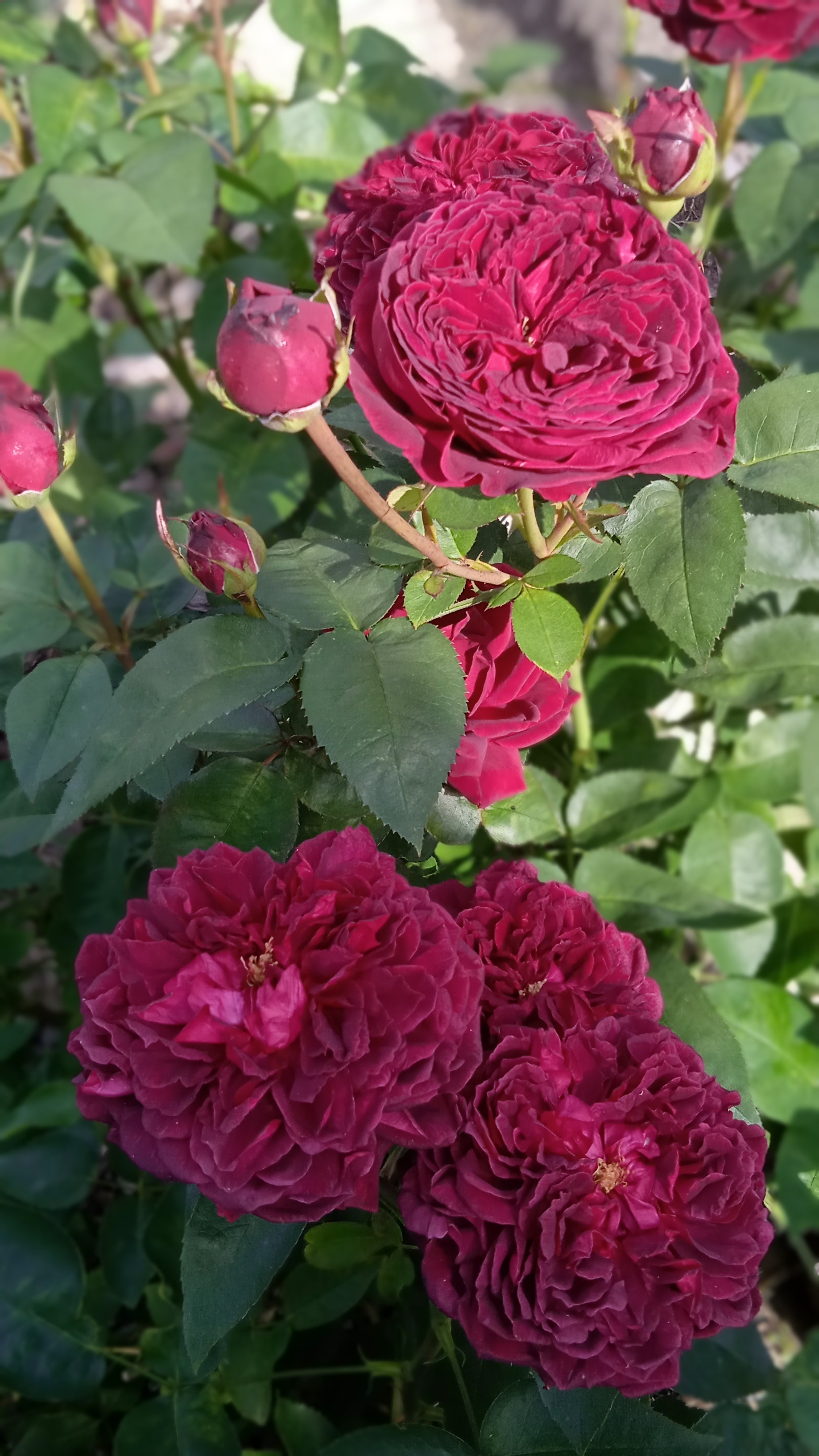 Преимущества: Живу на юге, жара до 45 все лето. Но поразительно цветет и не выгорает. Становится более пурпурным. Цвет вырви глаз. Подходит для центра клумбы на дальний план. Не согласна с мнением авторов. Она пахнет и не окукливается в дождь. У нас месяц лили дожди. Так вот, рядом окуклились Абрахам и Шекспир. Растет раскидистым кустом, очень быстро, подпорки не нужны. Один недостаток-колючая. Однозначно рекомендую для жаркого лета.