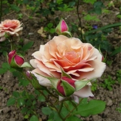 Окраска цветка варьируется от кофейной на внутренней стороне лепестков до терракотовой на их изнанке. Роза образует компактный куст высотой от 60 до 70 см и шириной около 60 см, что делает её идеальной для небольших садов или в качестве акцента в более крупных цветочных композициях.