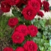 В мае, когда воздух прогревается в достаточной степени, на среднерослом кусте с зелеными обильными листьями появляются первые бутоны. Они собраны в кисти (или гроздья, по мнению других любителей роз). На одной ветке может быть до 15 штук, но чаще – от 3 до 8. Бутоны темно-красного (почти багрового) цвета, по мере распускания немного светлеют, переходя в огненно-красный. Цветки сравнивают с чашечками, в середине которых находятся золотистые тычинки.