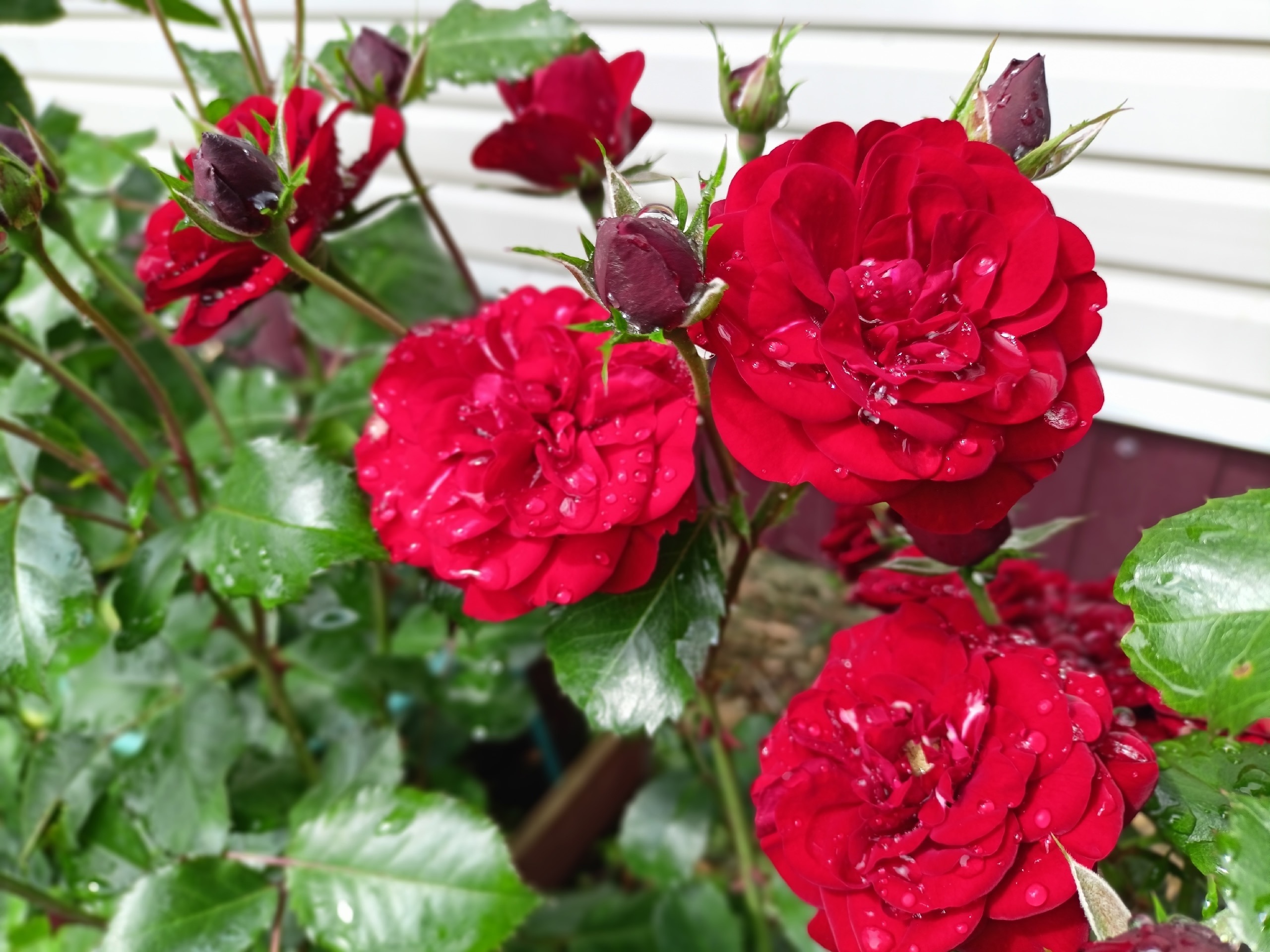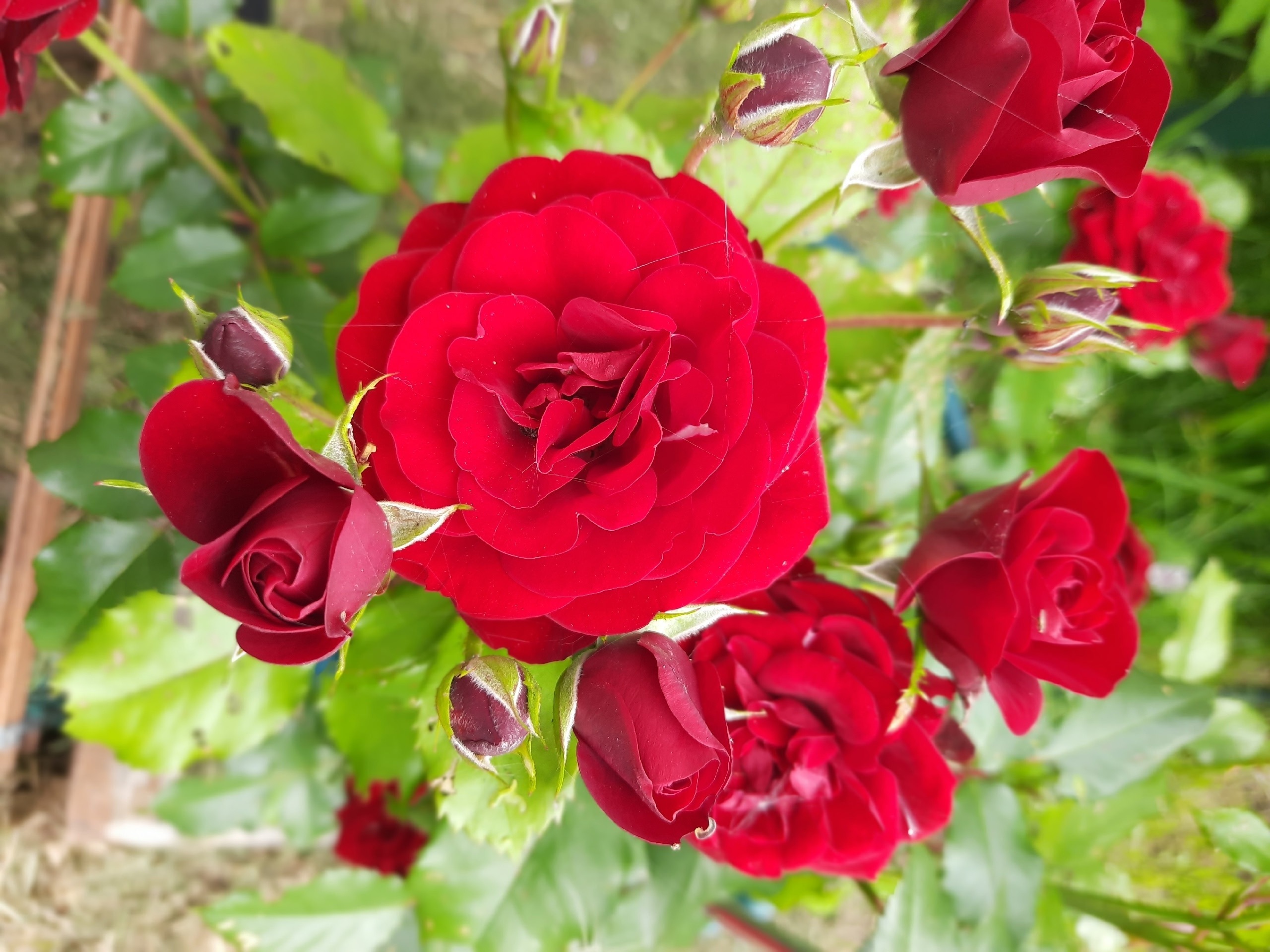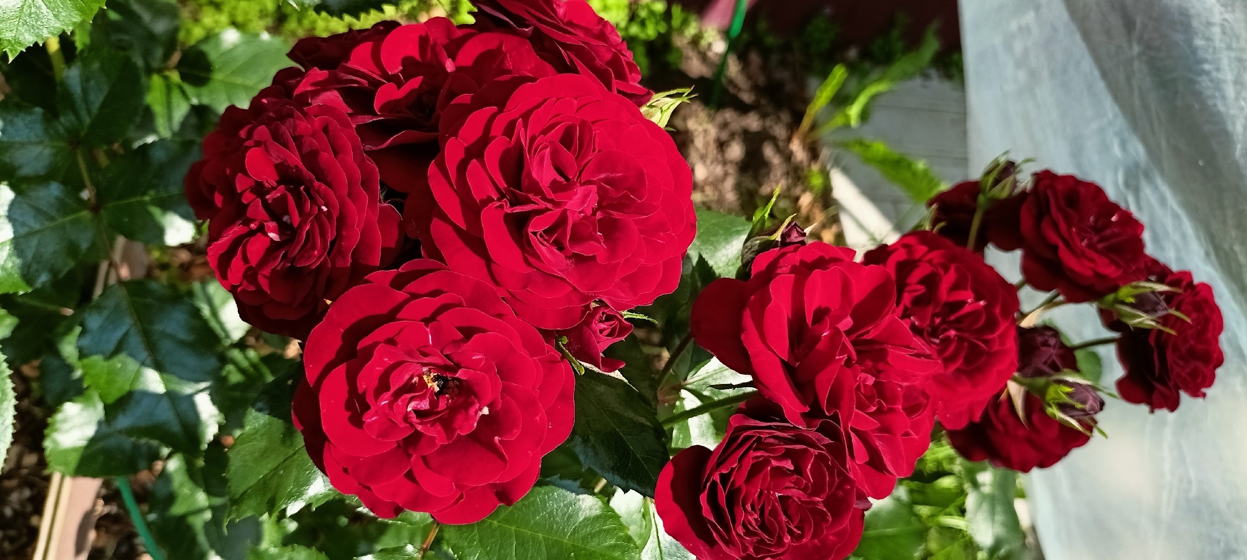Преимущества: Роза шикарная, собрано в одной кисти не менее 10 бутонов, на прямом стебле, смотрится как букет, яркий цвет, не выгорает, не облетает, после дождя, конец июля, кустик чистый