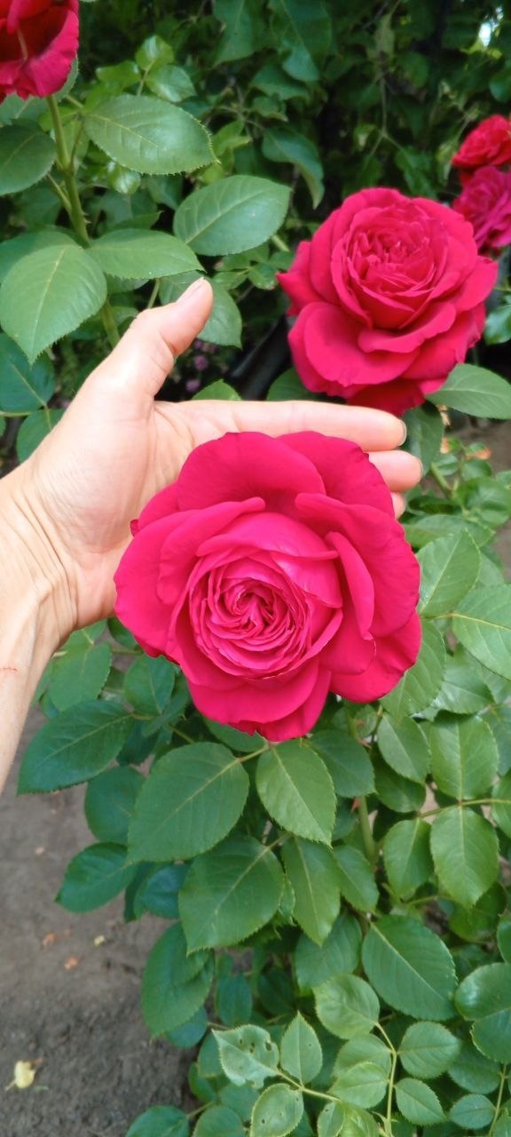Преимущества: Необыкновенно красивая роза. Куст высокий 120 – 140 см. Прямостоящий с упругими стволами, темно зеленой глянцевой листвой. Выглядит как деревце роза. Цветы необыкновенно винного фиолетово-бордового цвета. Цветок огромен до 15 см может достигать, упругий. Лепестки очень плотные. Аромат дорогого розового вина. Однозначно рекомендую эту розу 🌹 каждому розоводу. Растет под яблоней. Роза двух летка. Изумительное здоровье.