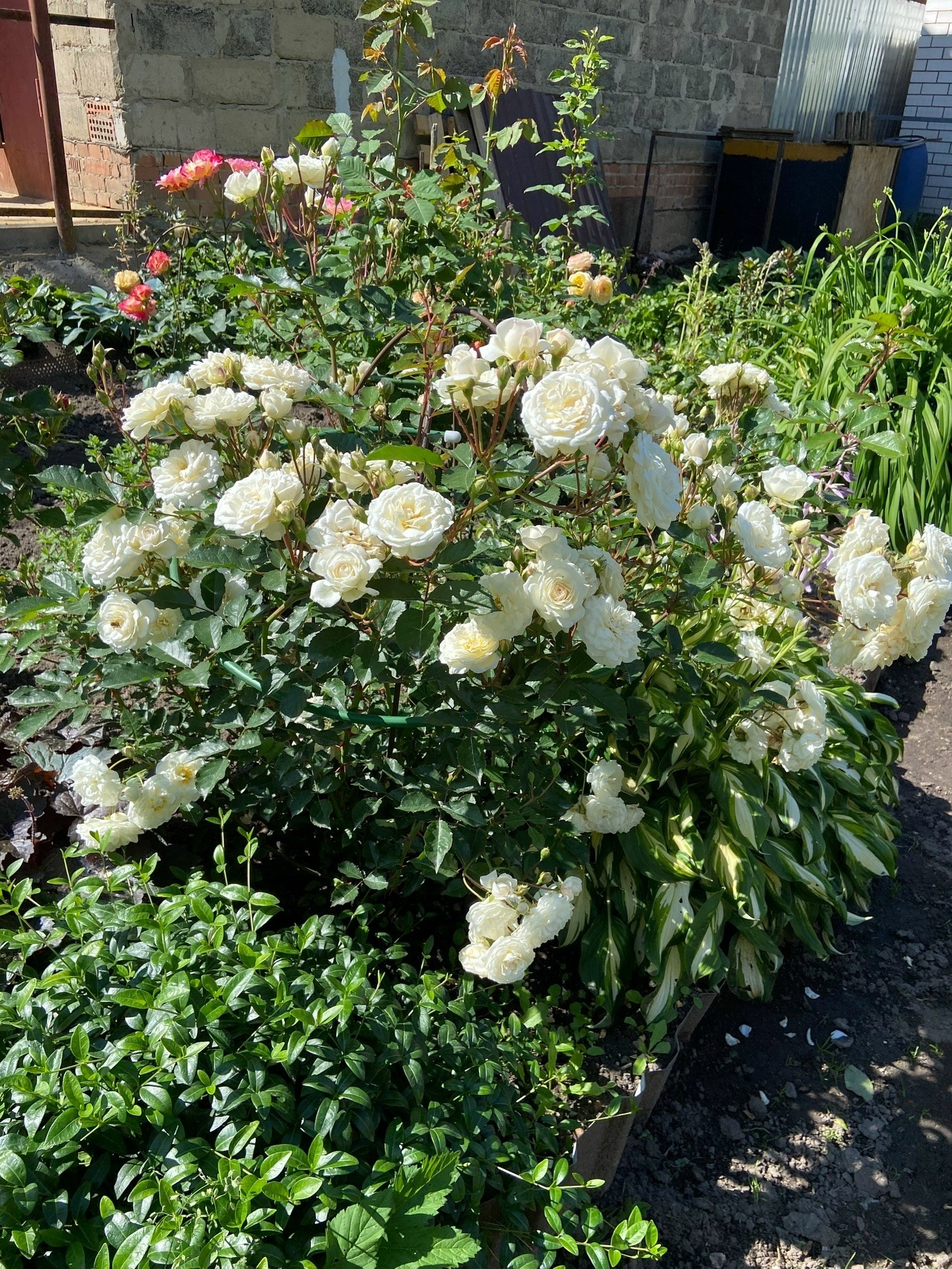 Недостатки: В меру колючая. Поникающая, подвязываю, чтобы массивные соцветия не лежали на земле.