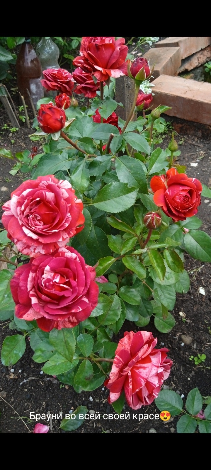 Преимущества: Роза Брауни очень красива. У меня первогодка, цвела хорошо. Нравится, что цветы хорошо держат жару и дожди. А ещё у неё прекрасный аромат, а сам цветок... Шедевр... Красно-коричневые оттенки с бело-розовыми штрихами, ни у одной розы больше нет такого окраса.
