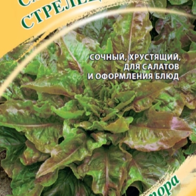 Стрелец отличается своей прямостоячей розеткой листьев высотой около 30 см и диаметром до 28 см. Листья имеют средний размер с продолговато-эллиптической формой и красноватым цветом с антоциановой окраской. Сорт обладает отличными вкусовыми качествами и может использоваться не только в салатах, но также для украшения различных блюд.