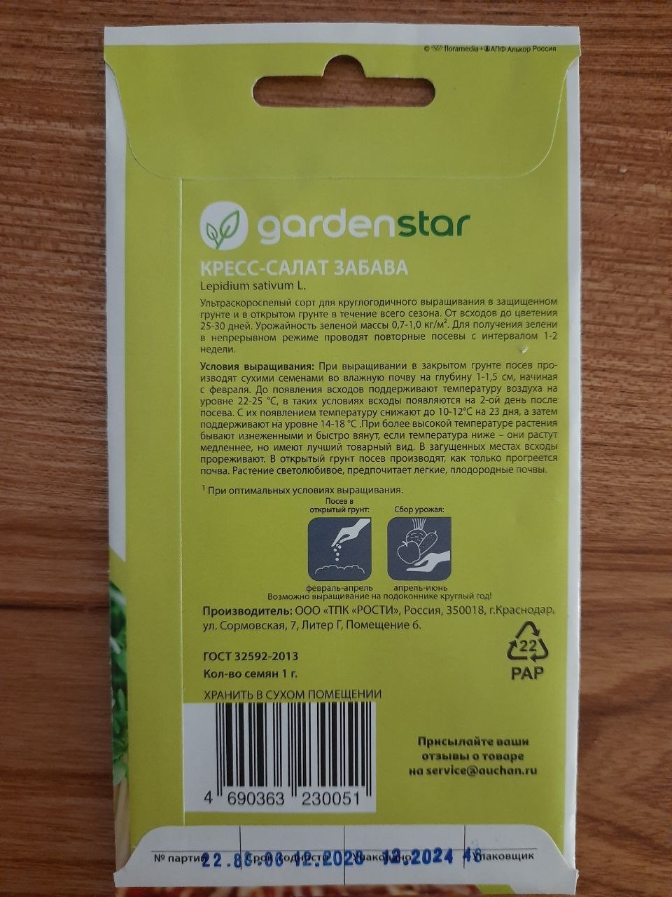 Комментарий: Пока только фото упаковки семян с информацией о сорте. Позже напишу настоящий отзыв. Планирую выращивать дома на подоконнике в качестве микрозелени.