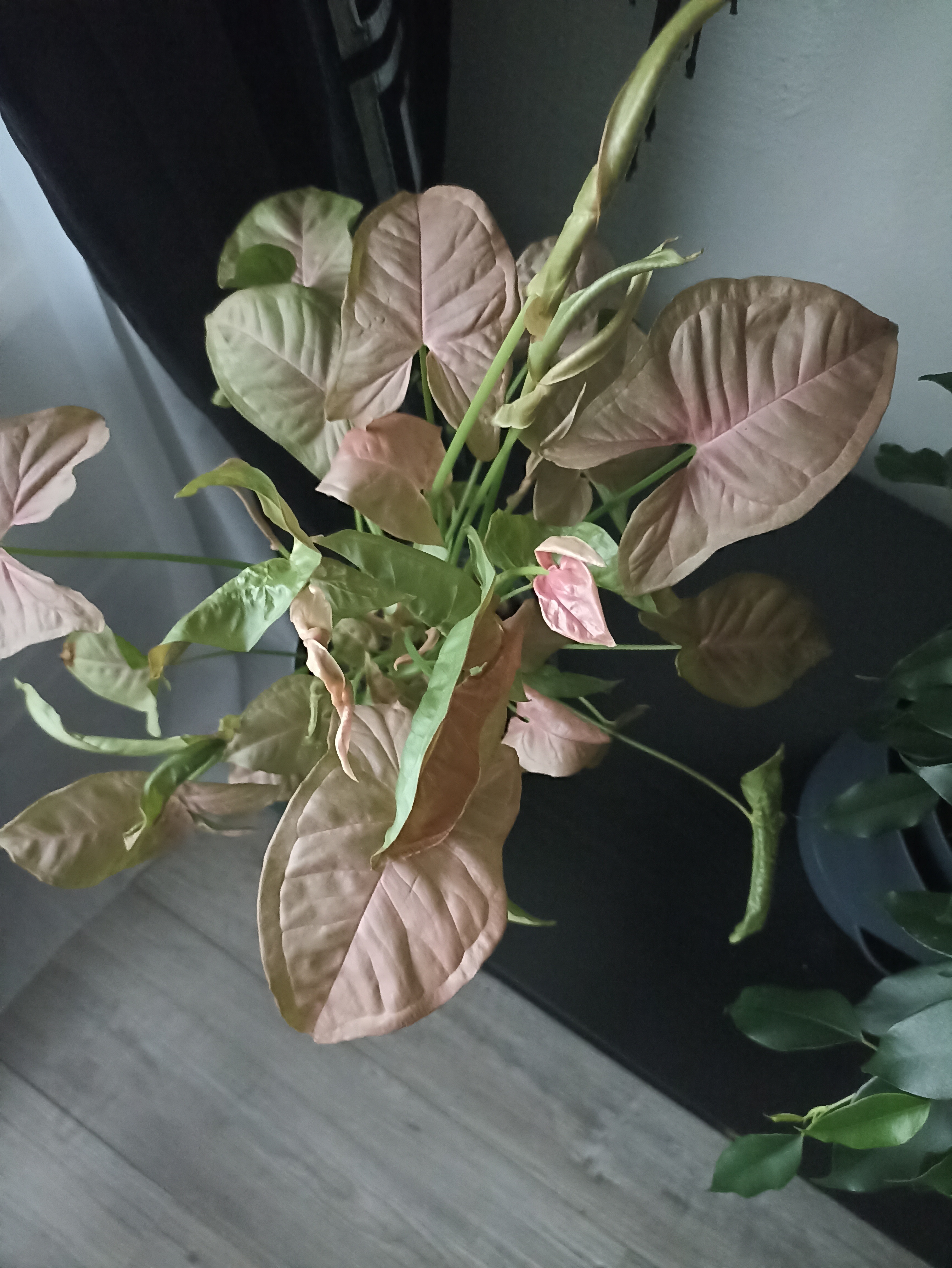 Сингониум Неон Пинк нуждается в ярком рассеянном свете для нормального развития. Растение не должно быть под прямыми лучами солнца, поскольку это может вызвать ожоги на листьях.