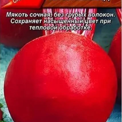 Корнеплоды имеют округлую форму и гладкую поверхность без заметных дефектов. Масса корнеплода варьируется от 220 до 380 граммов, что делает их достаточно крупными. Опробковение головки среднее, кольцеватость мякоти выражена умеренно. Цвет мякоти насыщенно-красный; она обладает нежной и сочной консистенцией.