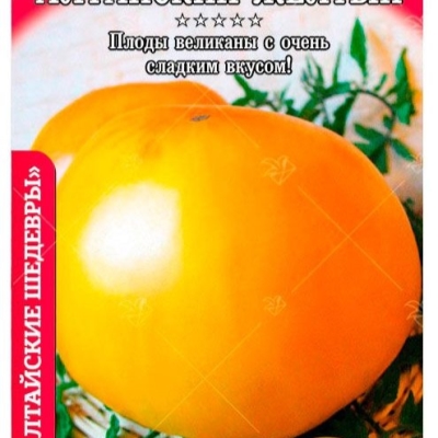 Плоды томата Алтайский желтый отличаются внушительными размерами: их масса варьируется от 250 до 600 граммов. Форма плода плоскоокруглая, что делает его удобным для нарезки и использования в салатах или других блюдах. Число камер (гнезд) составляет от 4 до 6, что также влияет на структуру мякоти.
