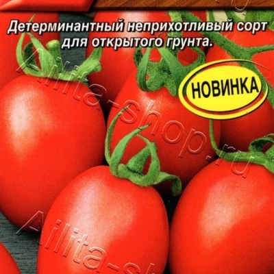 Томат представляет собой штамбовое детерминантное растение высотой 40-55 см. Листья у него среднего размера, темно-зеленого цвета. Соцветия простые: первое закладывается над 6-7 листом, а последующие — через 1-2 листа. Плоды имеют яйцевидную форму и гладкую поверхность, что придает им привлекательный вид на рынке.
