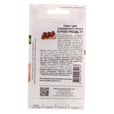 Бурая гроздь – это гибридный сорт, разработанный Кирамовым Олегом Дмитриевичем и допущенный к использованию в 2018 году. Этот сорт относится к индетерминантным и имеет универсальное назначение.