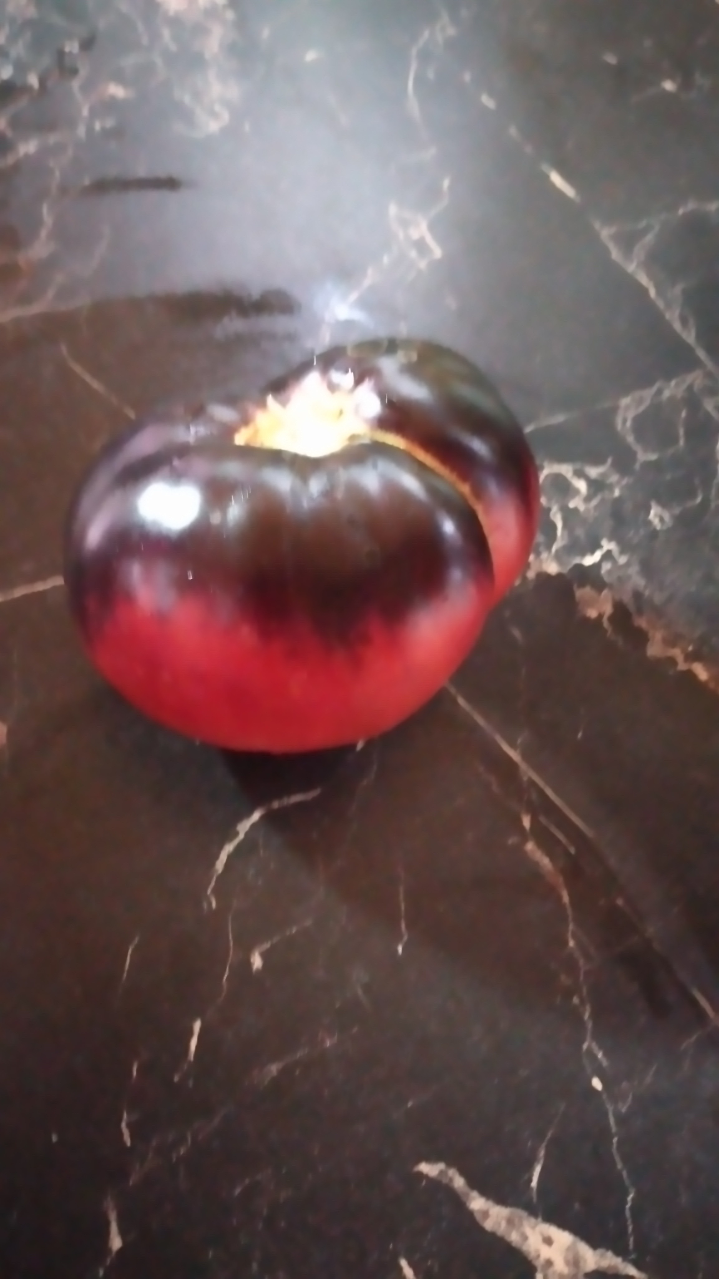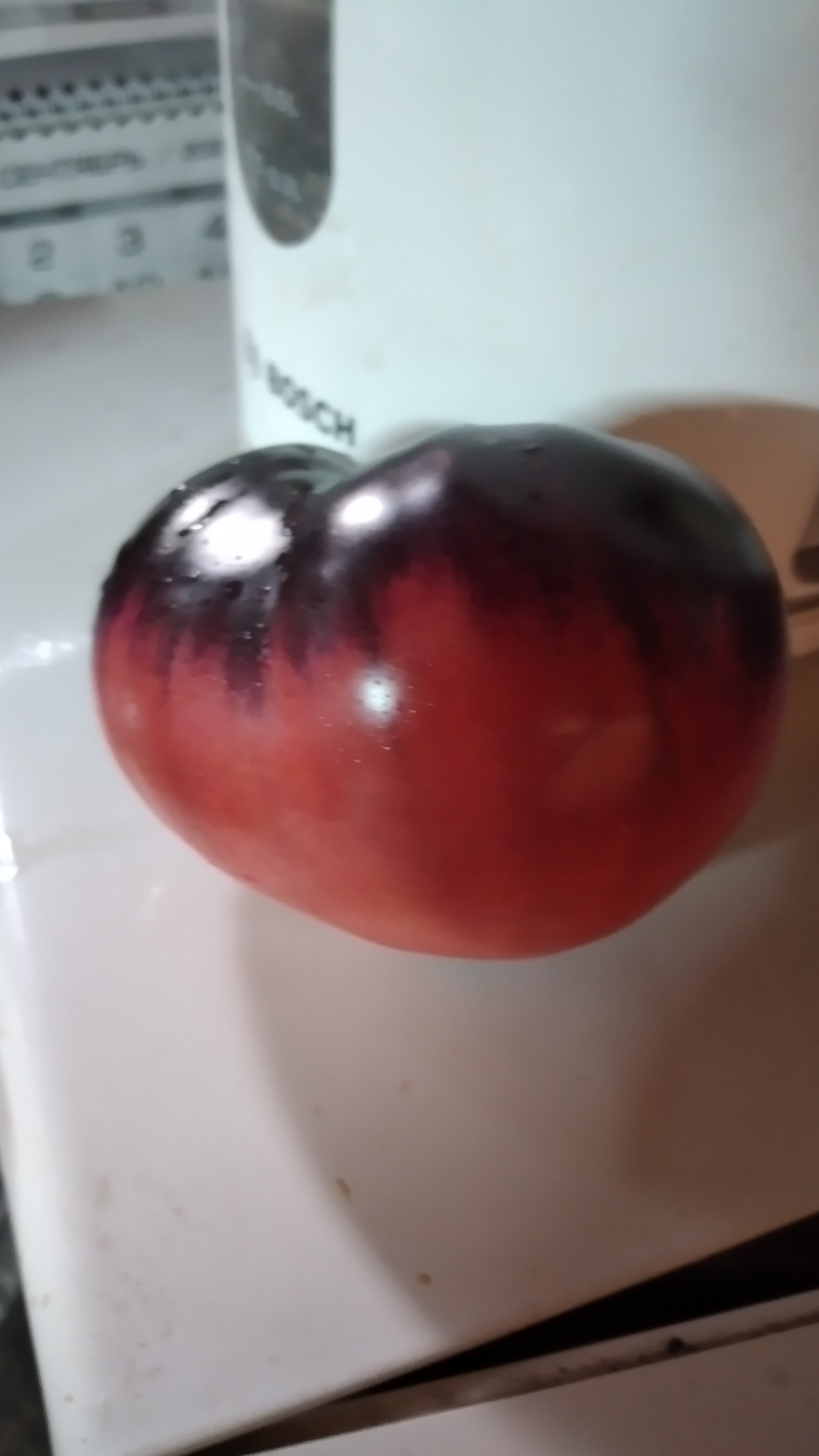 Достигнув спелого состояния, помидоры этого сорта приобретают темно-малиновый окрас. На них появляются темные «плечики», обязанные своим цветом антоцианам, которых на таких участках особенно много. Обычная масса ягод составляет 180-200 г. Рекордные экземпляры могут достичь и 0,45-0,65 кг. Прочие моменты: