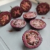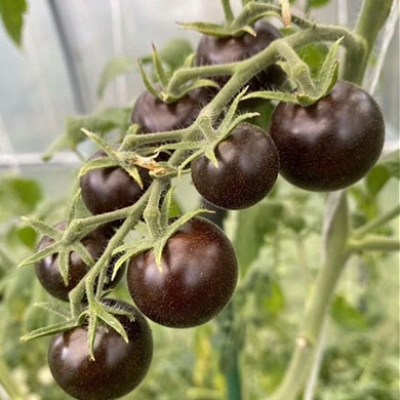 Плоды томата Черничный щербет отличаются высокой товарностью и урожайностью. Каждый куст может давать от 10 до 20 плодов в кисти, что значительно увеличивает общий урожай. Плоды округлой формы имеют кожицу фиолетово-малинового цвета и вес около 20 граммов каждый. Мякоть этих томатов сочная и имеет яркий фруктовый вкус с характерной фиолетовой окраской.