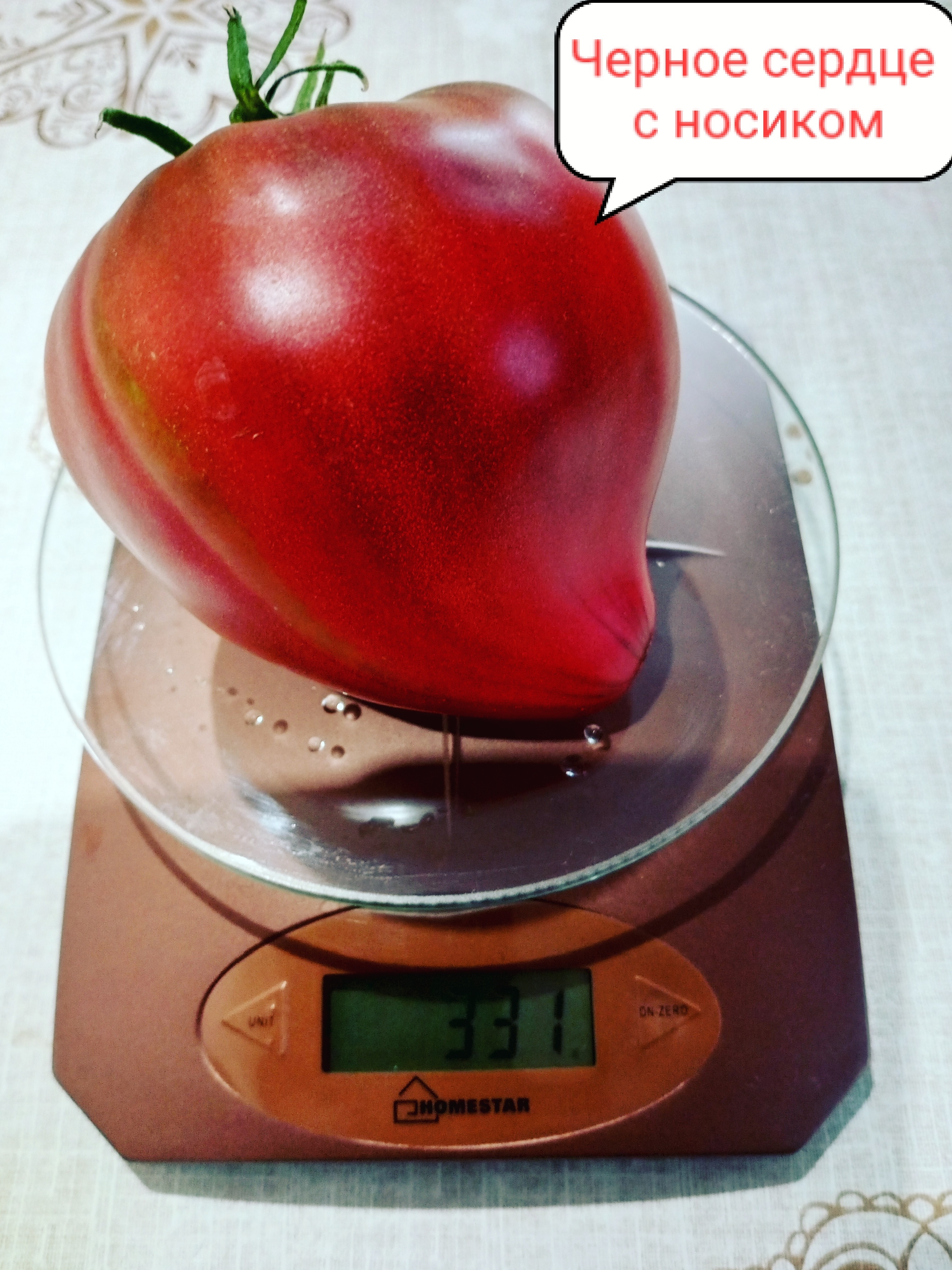 Черное сердце с носиком от Борисовны — типичный среднеспелый сорт. Он будет давать плоды долгое время в течение сезона. Растрескивание помидоров практически исключается.