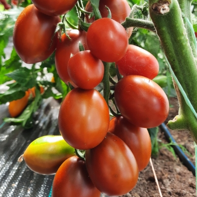 Плоды томата Черный гроздевой имеют сливовидную форму и могут достигать массы от 70 до 80 граммов. Их цвет варьируется от темно-красного до темно-кирпичного оттенка, что делает их визуально привлекательными. Каждая кисть может содержать от 8 до 10 плодов, что значительно увеличивает общую урожайность куста.