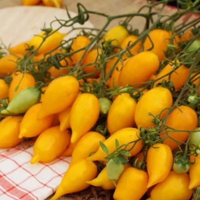 Плоды этого сорта характеризуются как средние по размерам. Зрелые помидоры окрашены в насыщенный желтый цвет. По весу плоды не превышают 70-100 граммов. Они имеют в основном интересную и немного вытянутую слаборебристую форму, с небольшим носиком. Кожица гладкая, мякоть плотная и сочная, без каких-либо пустот. Сорт отличается своей неплохой лежкостью. Недозревшие плоды можно дозаривать в домашних условиях.