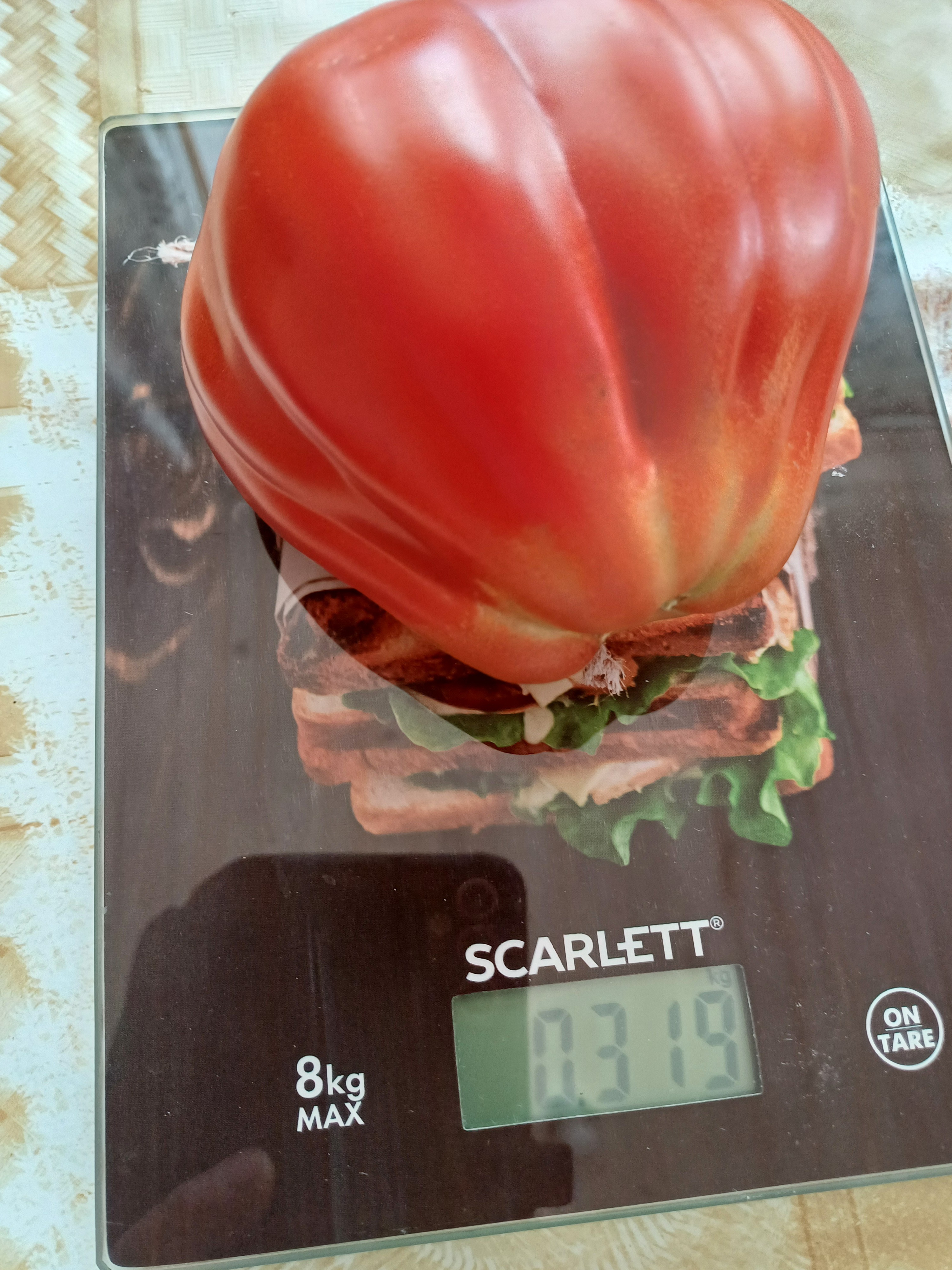 Плоды сладкие, без кислинки, очень мясистые. Кусты высокие 1,8 м. Плоды крупные 2-3 в кисти не более, средний вес 300-350 гр. Растянутый срок созревания, что очень удобно для сбора. Мякоть сахаристая, мясистая, кожица тонкая, семян немного. Для салатов, для лечо, для соков.... только, где нужно разрезать плоды, т. к. целиком в банку не положить. Сорт классный! Помидоры очень вкусные! Особых проблем с листьями и пасынками нет.