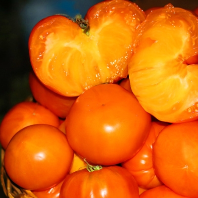 Плоды томата Карамельные сердца имеют апельсиново-рыжий цвет и отличаются плоскоокруглой формой. Масса одного плода варьируется от 200 до 400 граммов, что делает их достаточно крупными для использования в различных кулинарных целях. Сорт предназначен преимущественно для употребления в свежем виде, что позволяет насладиться всеми его вкусовыми достоинствами. Плоды обладают шикарным сливочным вкусом с характерной сладостью, которая привлекает внимание гурманов.