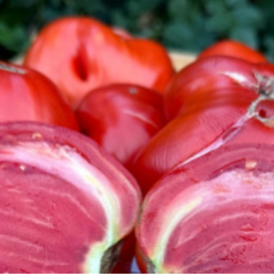 Плоды томата Красная линия имеют округлую форму сердца или могут быть представлены в виде сдвоенных сердец. Они отличаются внушительными размерами: масса одного плода может достигать до 1000 г. Мякоть у этих томатов малиновая, что придает им особую привлекательность как на вид, так и на вкус.
