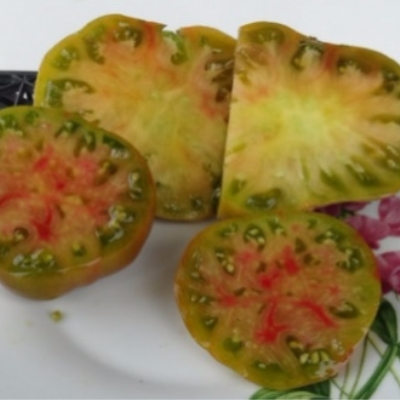 Плоды томата Красная мишень отличаются привлекательным внешним видом и отличными качествами. Незрелые помидоры имеют зеленый цвет с красным пятном на нижней части, что придает им особую декоративность. По мере созревания они становятся ярко-красными и достигают массы от 100 до 150 граммов. Мякоть плода имеет зеленоватый оттенок с красными разводами, что свидетельствует о высоком содержании полезных веществ и витаминов. Сорт предназначен как для употребления в свежем виде, так и для переработки: из него можно готовить соки, кетчупы и томатную пасту.