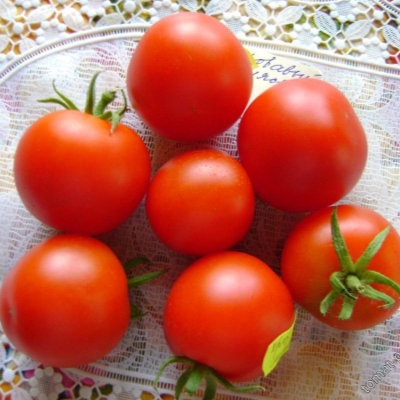 Плоды томата Кровавый мясник обладают округлой формой и ярким красным цветом по мере созревания. Масса одного плода варьируется от 50 до 90 граммов, что делает их достаточно крупными для использования в различных кулинарных целях. В кисти может образовываться от 3 до 6 плодов одновременно, что способствует увеличению общей урожайности куста.