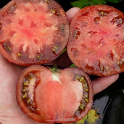 Плоды томата Лепрекон Гоша обладают впечатляющими характеристиками: их масса варьируется от 100 до 300 граммов, а форма — плоскоокруглая. В кисти может образовываться от 3 до 6 плодов одновременно, что способствует высокой урожайности сорта. Мякоть этих томатов красно-бордового цвета, сочная и нежная на вкус. Кожица у плодов тонкая, что делает их идеальными для употребления в свежем виде.