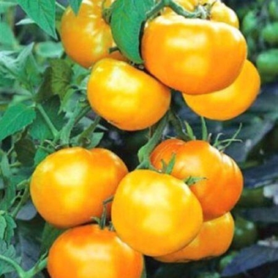Плоды томата Микадо золотой имеют яркий желтый цвет и плоскоокруглую форму, что придает им эстетическую привлекательность. Масса одного плода может достигать до 500 граммов, что является значительным показателем для томатов данного типа. Мякоть у этих помидоров мясистая и также имеет желтый цвет, что делает их не только вкусными, но и красивыми на вид. Благодаря своим размерам и форме они отлично подходят для употребления в свежем виде — как в салатах, так и в качестве гарнира к основным блюдам.