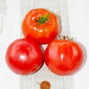 Только что сформировавшиеся из завязей ягоды Первоклашки имеют нестандартный серо-зеленый цвет. Около основания у них появляется простое зеленое пятно. Поспевая, томаты розовеют и приобретают крупные размеры (для них типична масса 240-270 г). По форме эти ягоды напоминают плоскую окружность и имеют лишь слаборазвитые ребра. Развиваться урожай станет на простых соцветиях.