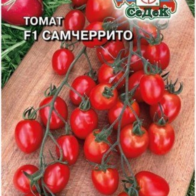 Плоды томата Самчеррито имеют овальную форму и могут достигать массы до 25 граммов. Они растут кистями по 30 штук, что обеспечивает высокую урожайность — до 8 кг с квадратного метра. Кожица у плодов прочная, что позволяет им хорошо переносить транспортировку и хранение без потери внешнего вида. Мякоть плотная, что делает этот сорт идеальным для консервирования и приготовления различных блюд.