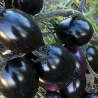 Плоды томата Синий Марцано имеют сливовидную форму с заостренным носиком и могут достигать массы от 50 до 80 граммов. Их цвет варьируется между оранжево-красным и сине-черным оттенком, что делает их визуально привлекательными на грядке или в корзине с овощами. В одной кисти может образовываться от 10 до 15 плодов, что значительно увеличивает общую урожайность растения.