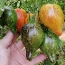 Плоды томата Сладкая Карамель Софии имеют сердцевидно-удлиненную форму с вытянутым носиком. В незрелом состоянии они окрашены в зеленый цвет, а по мере созревания приобретают яркую пеструю окраску с красивейшим лиловым антоцианом на плечиках. В полной спелости разрез плода выглядит красным с желтыми лучами и вкраплениями, что придает ему особую декоративность.
