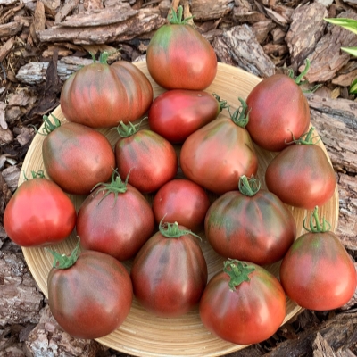Плоды томата Старинное Сердце Равенны обладают насыщенным коричнево-пурпурным цветом и крупной грушевидной формой. Масса одного плода варьируется от 150 до 200 граммов, что делает их достаточно крупными для использования в различных кулинарных целях. В кисти обычно образуется от 5 до 8 плодов, что способствует увеличению общего урожая.