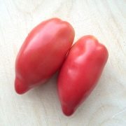 По форме плоды сливкообразные, с вытянутым носиком, именно поэтому его назвали Сызранской пипочкой. Окрас томатов – розовый, на вкус они сладкие. Плоды имеют плотную кожицу, поэтому идеально подойдут для засолки.